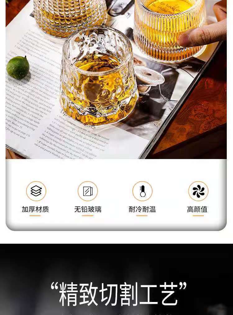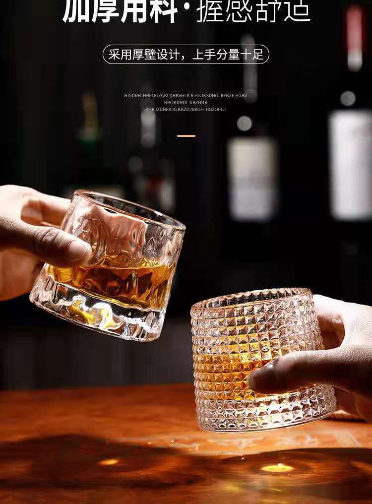 ins creative rotational whiskey glass household gyro glass foreign hammered pattern cup decompression shake cup tumbler cup 中文版