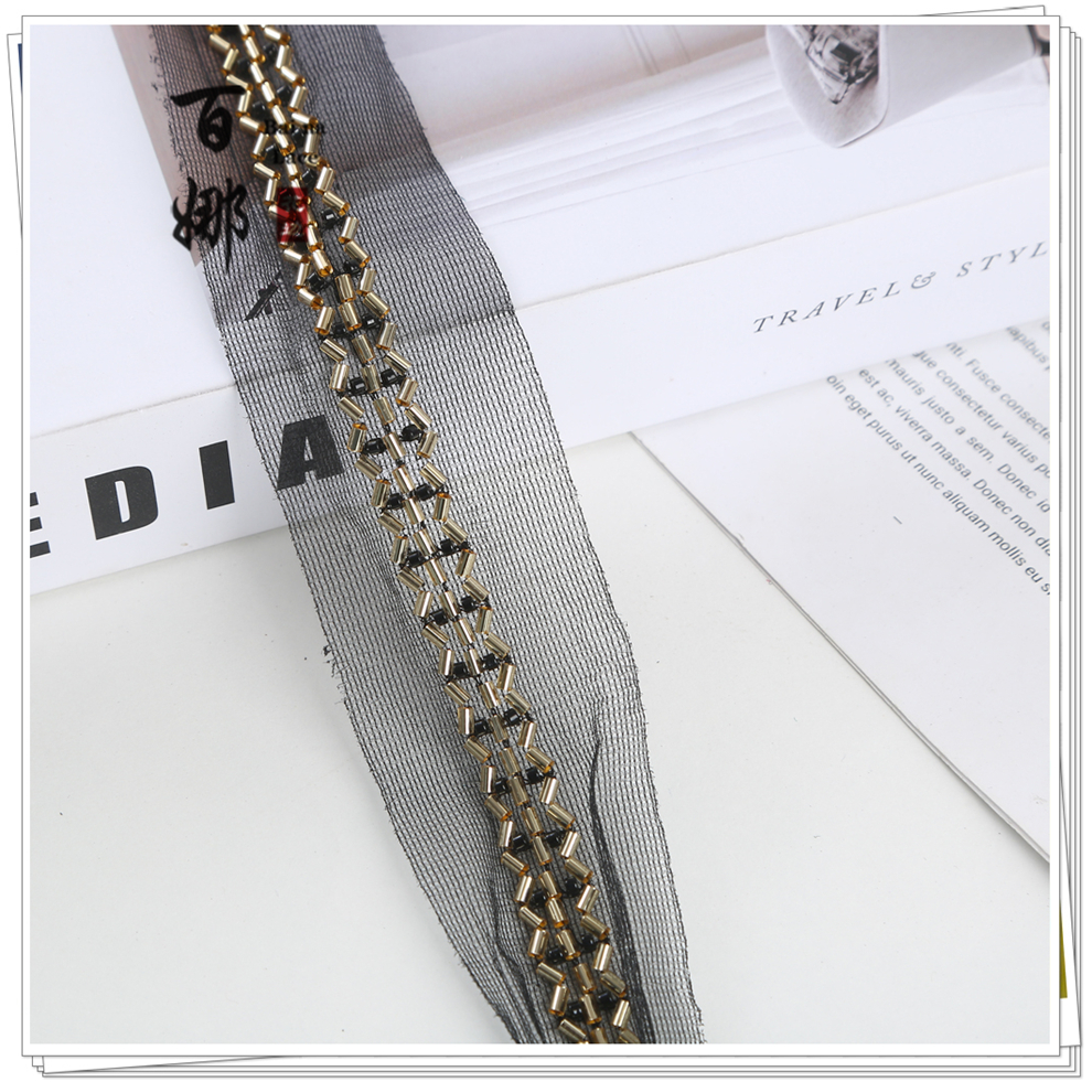 Product Name: Simple one-character mesh base beaded edge headscarf stage dress kimono door flap collar decoration accessory