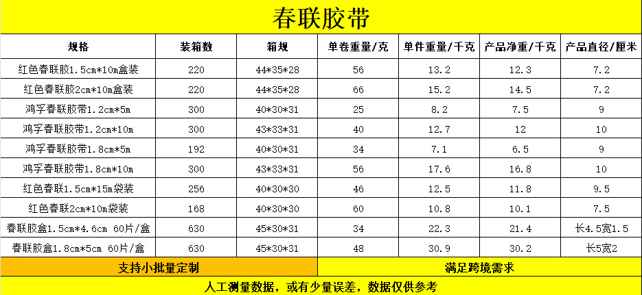 | new year couplet double-sided adhesive 1.2cm * 5m | CN¥ 1.11 | 293000 piece available |