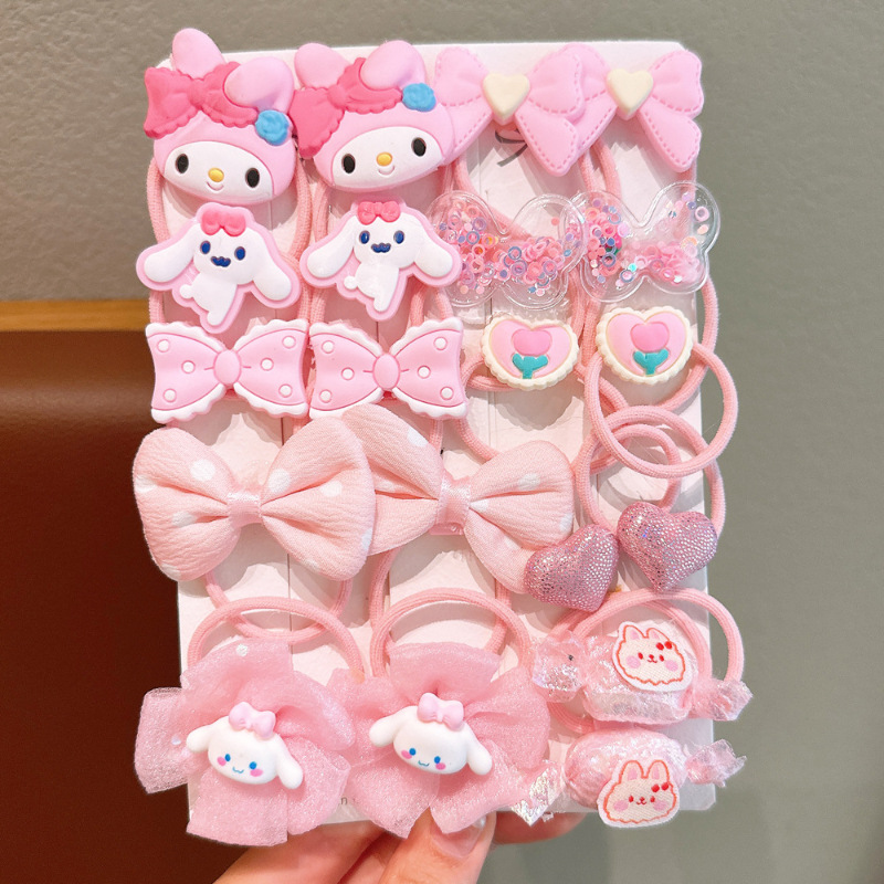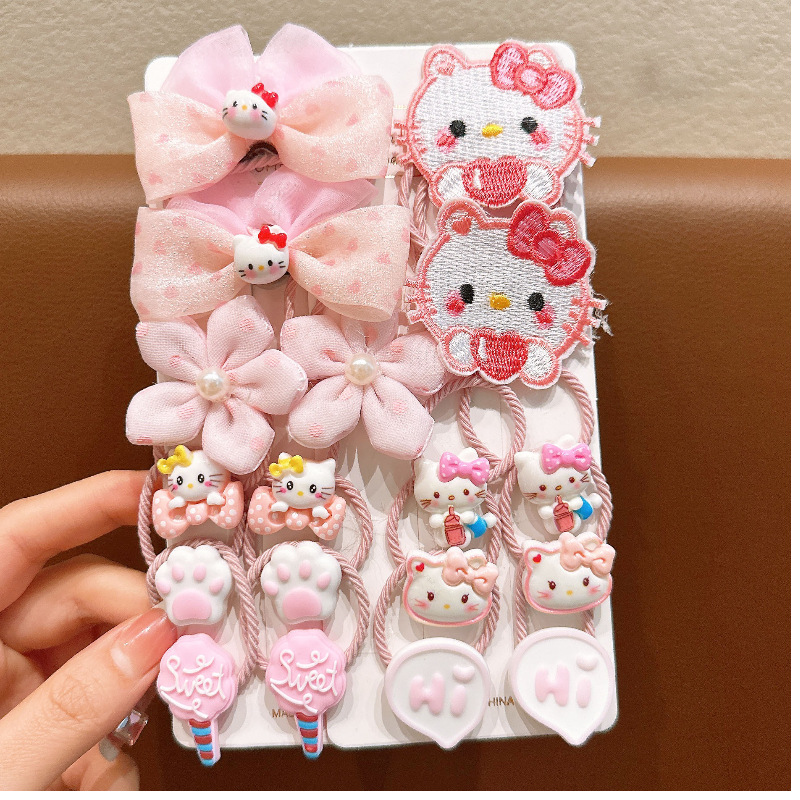 light pink cute cat hair ring 18-piece set