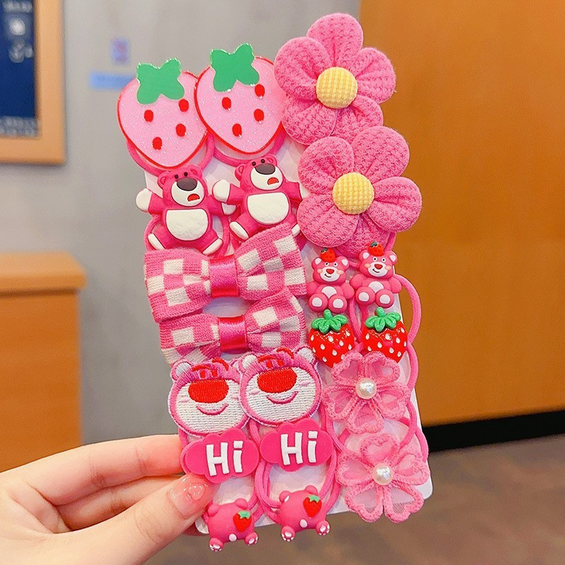 rose red strawberry bear hair ring 20 pieces