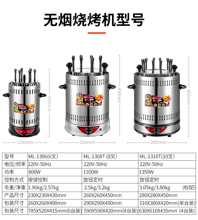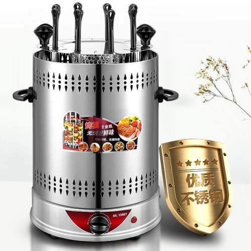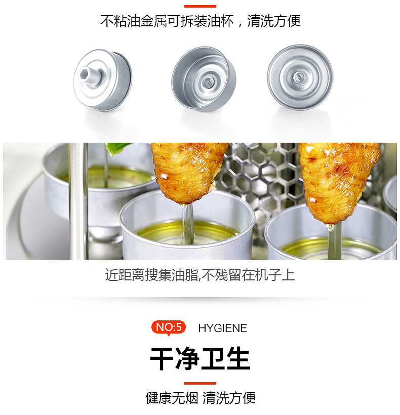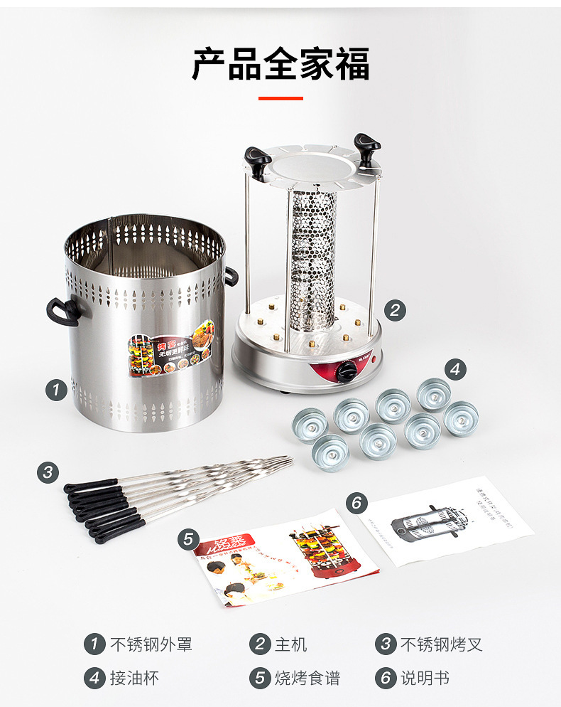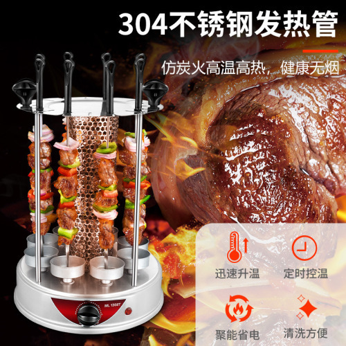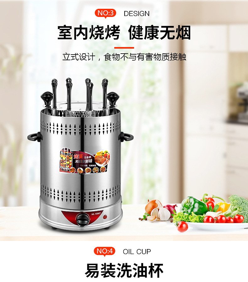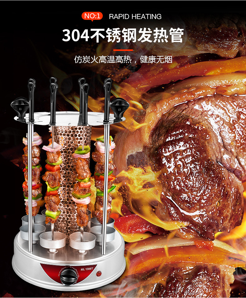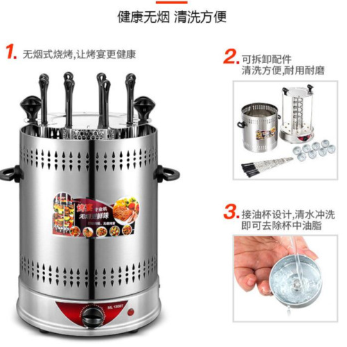 household electric barbecue grill smokeless rotating mutton cubes roasted on a skewer machine 304 stainless steel timing barbecue machine 1350w electric baking pan 中文版