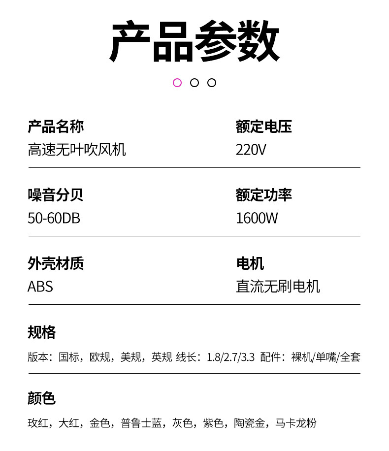 factory private model hot sale household high-speed bladeless hair dryer anion does not hurt hair hair dryer high-speed hair dryer 中文版