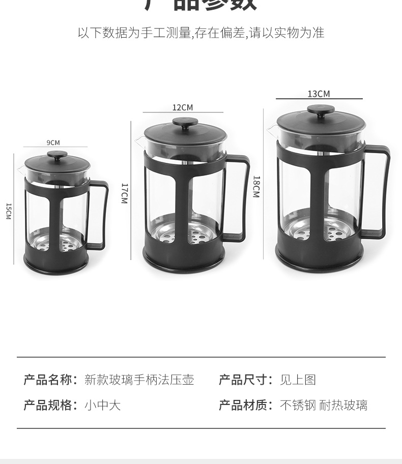 stainless steel filter screen tea infuser hand made coffee maker french press plastic heat-resistant borosilicate french filter pot 中文版