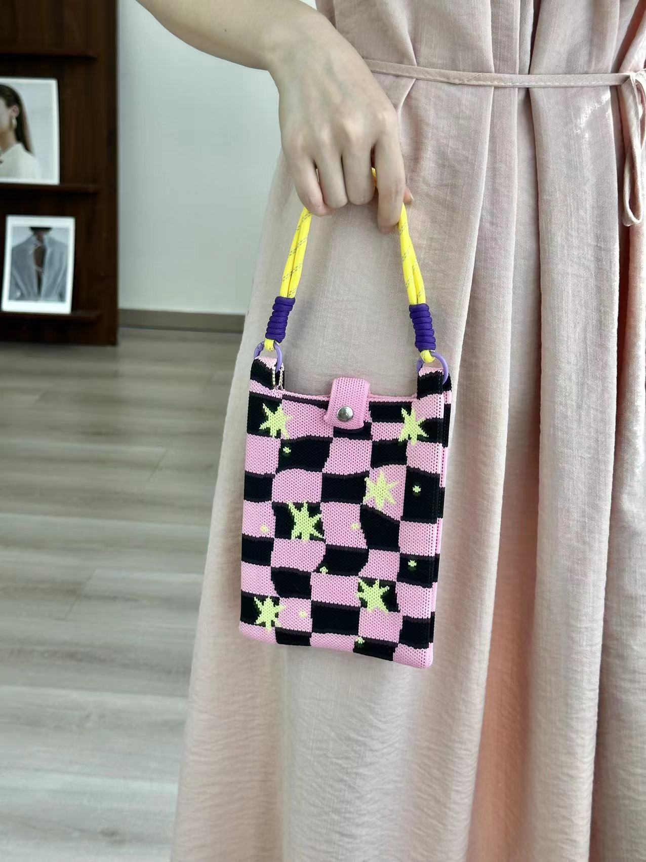 pink and yellow star mobile phone bag