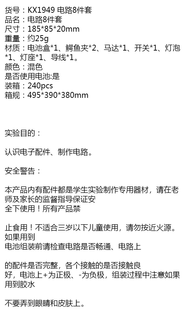 8-piece circuit set circuit experimental box primary school science electricity multiple-series connection experimental apparatus battery box switch lights