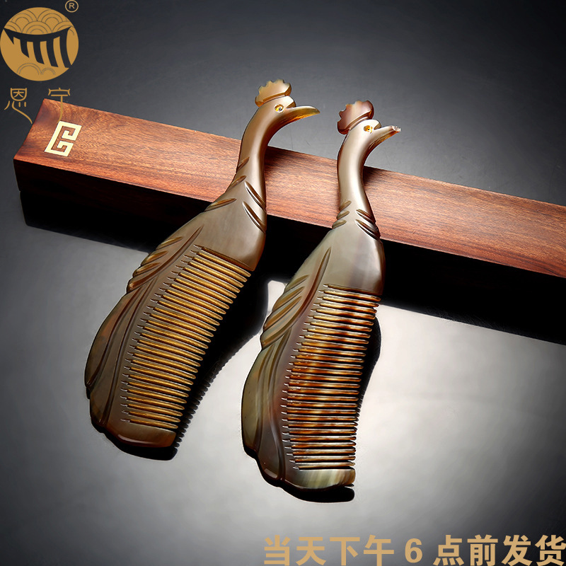 孔雀牛角梳21cm