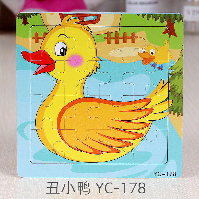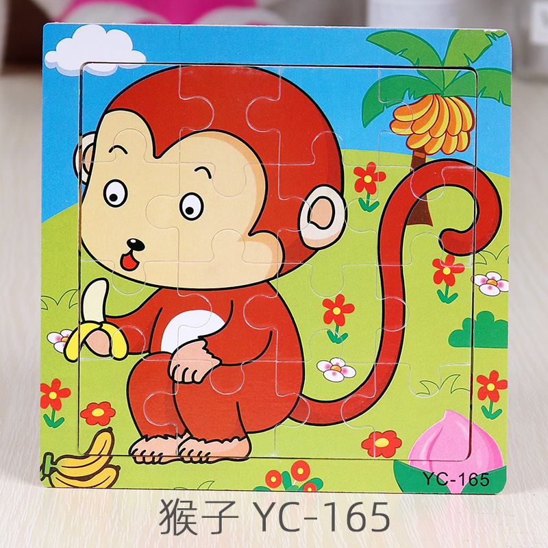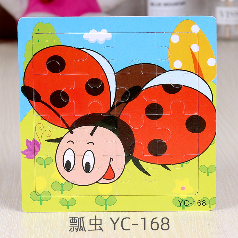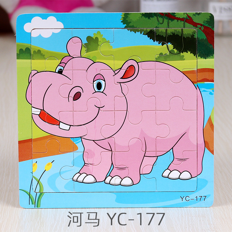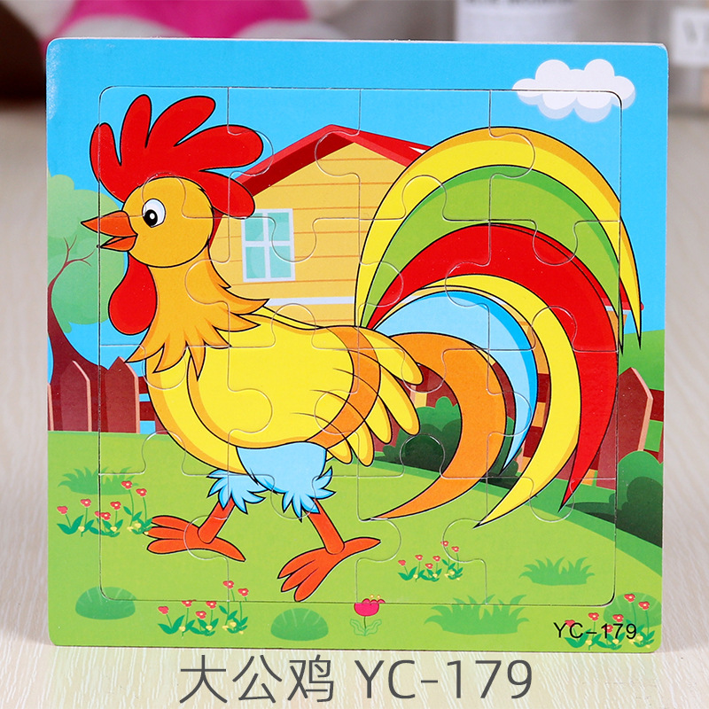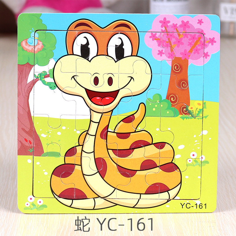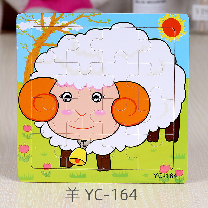 16-Piece Puzzle Animal Cartoon Wooden Toy Cross-border 0-3 Years Old Children's Intellectual Education Early Education Puzzle Montessori Teaching Aids Animal Cartoon Cognitive Toy Cross-border Hand-grab Puzzle Board Toy Wholesaling
