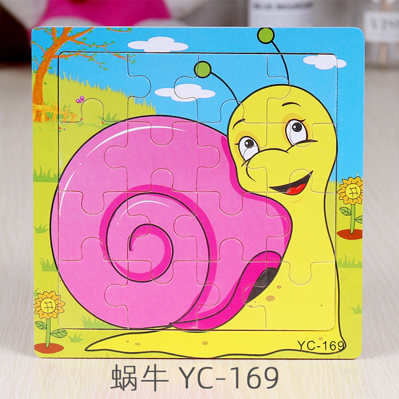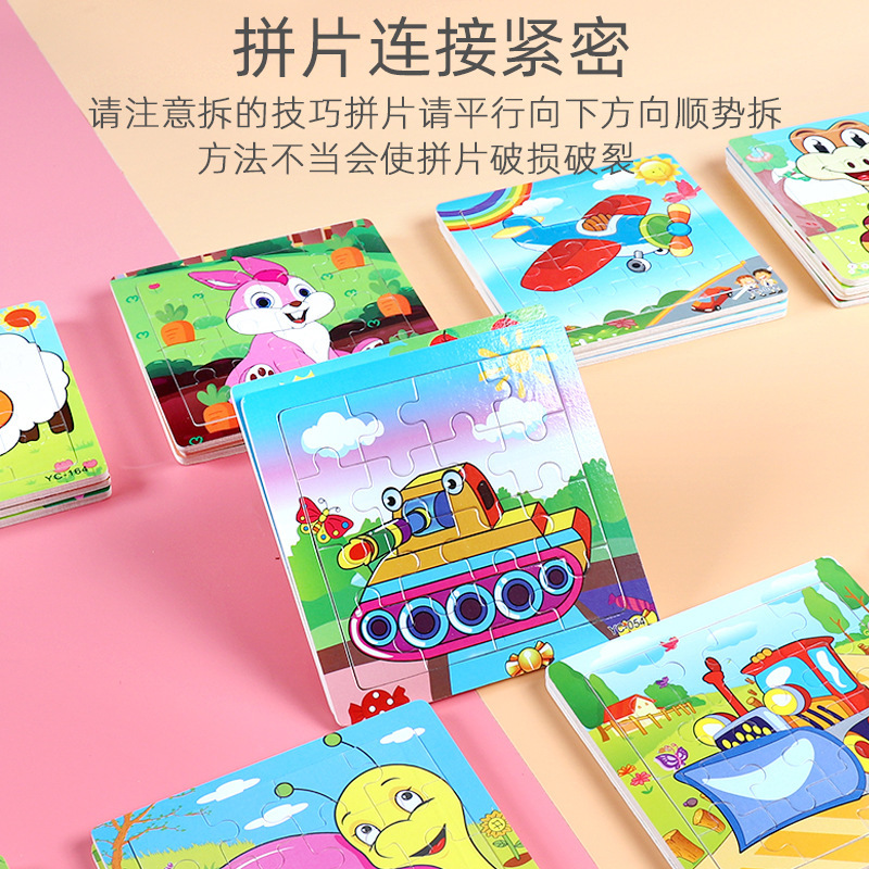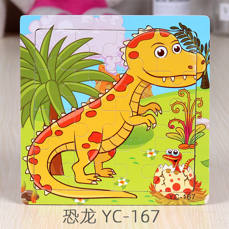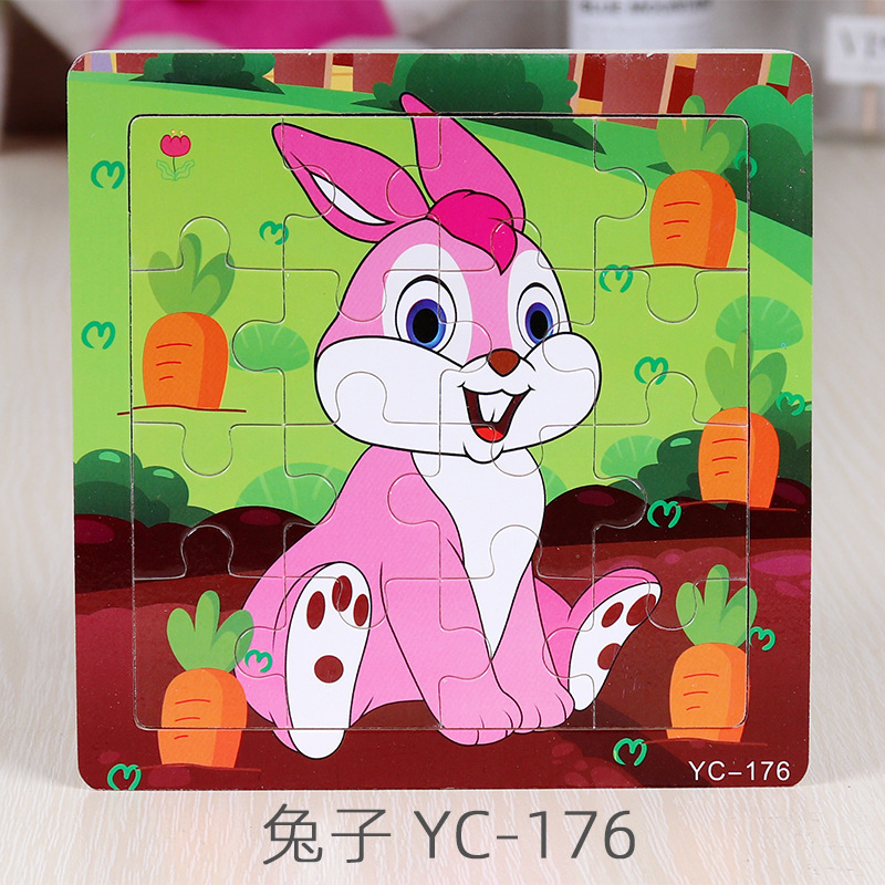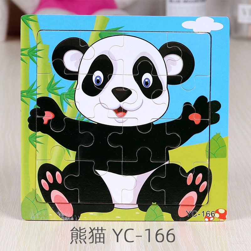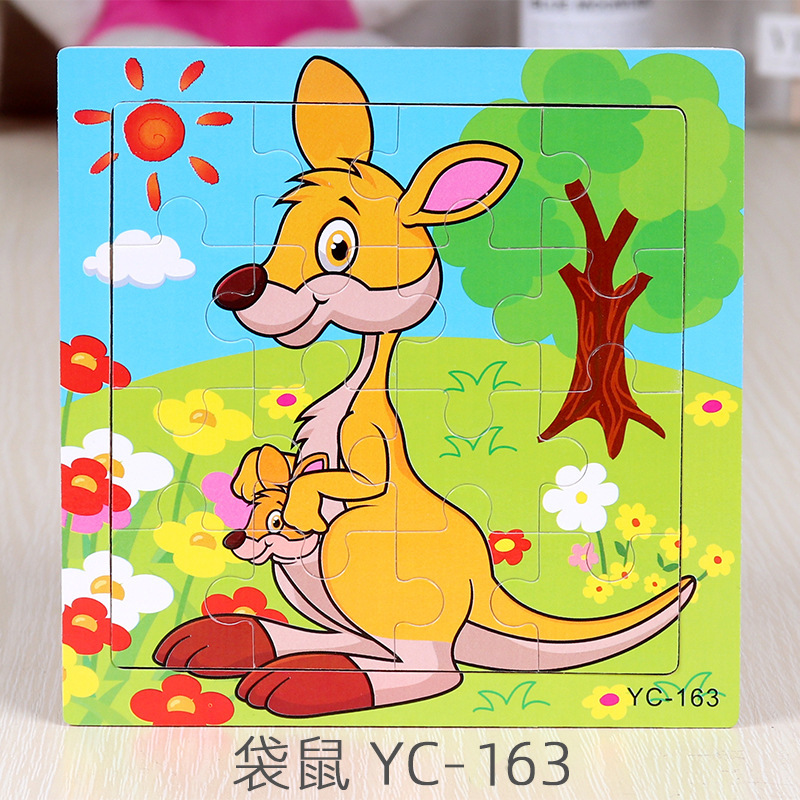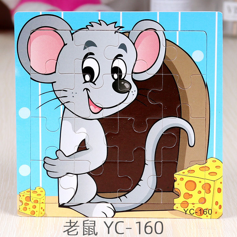 16-Piece Puzzle Animal Cartoon Wooden Toy Cross-border 0-3 Years Old Children's Intellectual Education Early Education Puzzle Montessori Teaching Aids Animal Cartoon Cognitive Toy Cross-border Hand-grab Puzzle Board Toy Wholesaling