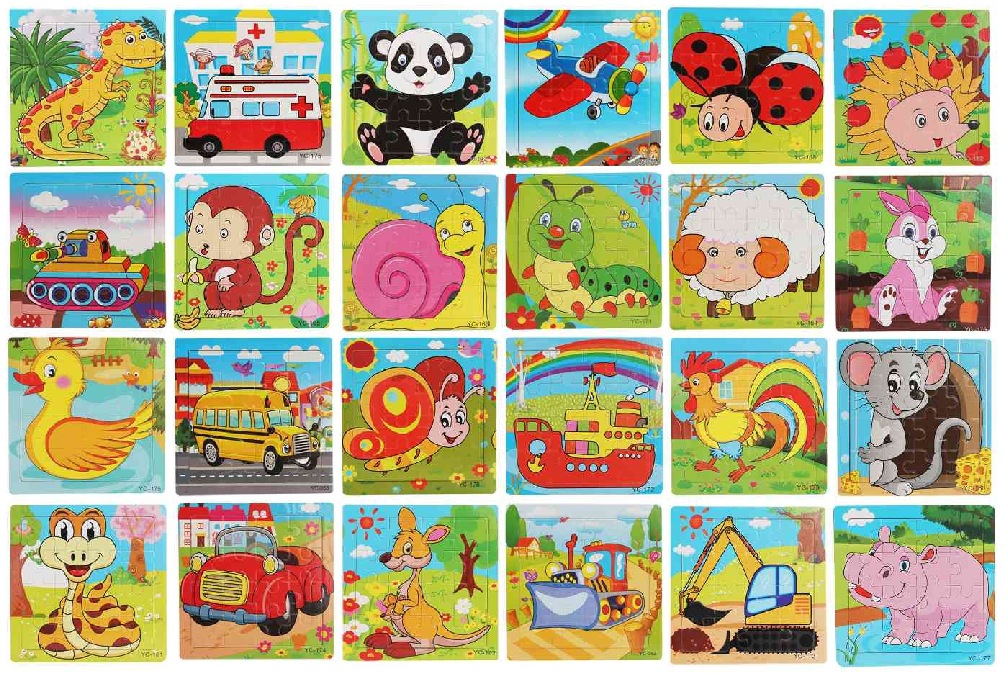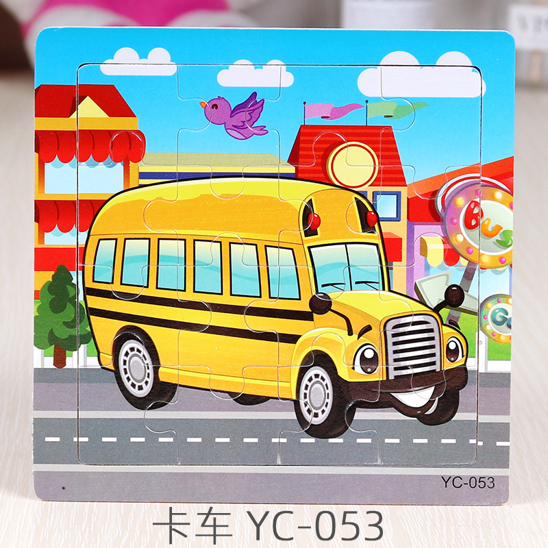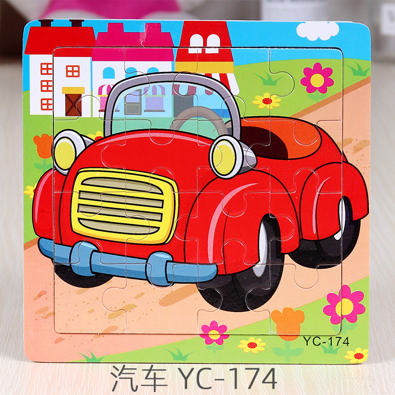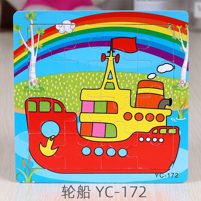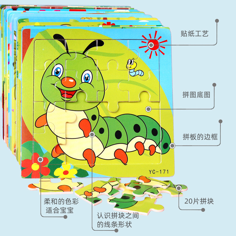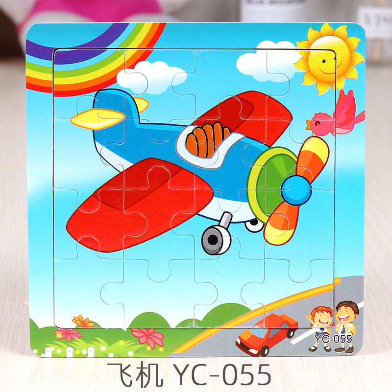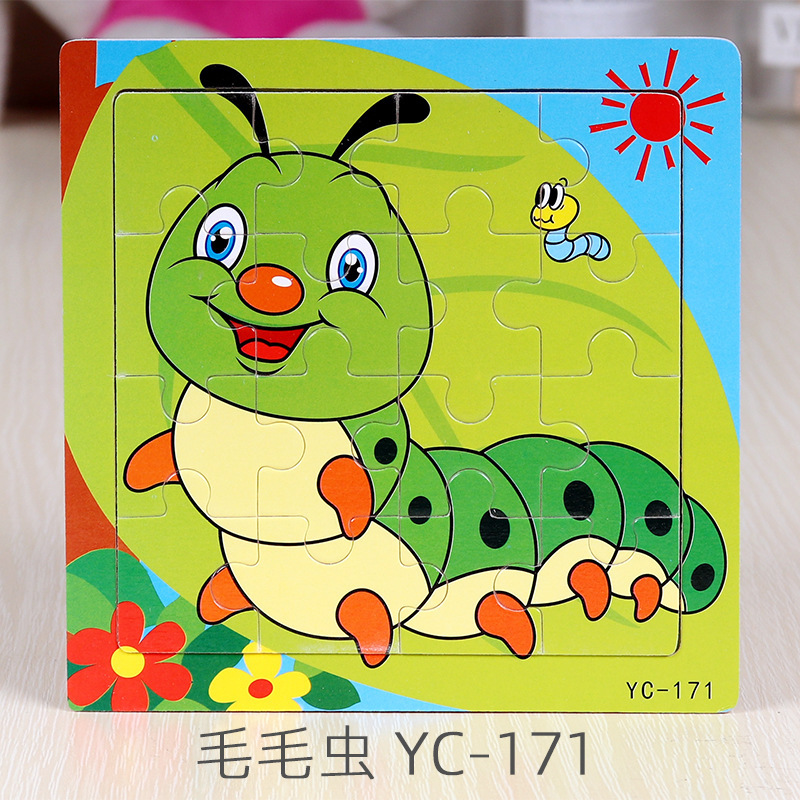 16-Piece Puzzle Animal Cartoon Wooden Toy Cross-border 0-3 Years Old Children's Intellectual Education Early Education Puzzle Montessori Teaching Aids Animal Cartoon Cognitive Toy Cross-border Hand-grab Puzzle Board Toy Wholesaling
