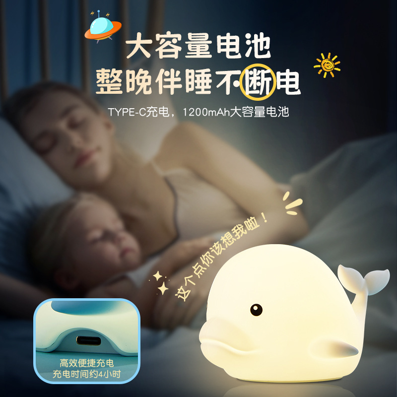foreign trade exclusive dolphin night light dual-purpose charging and plug-in bedroom ambience light creative gift whale silicone pat lamp