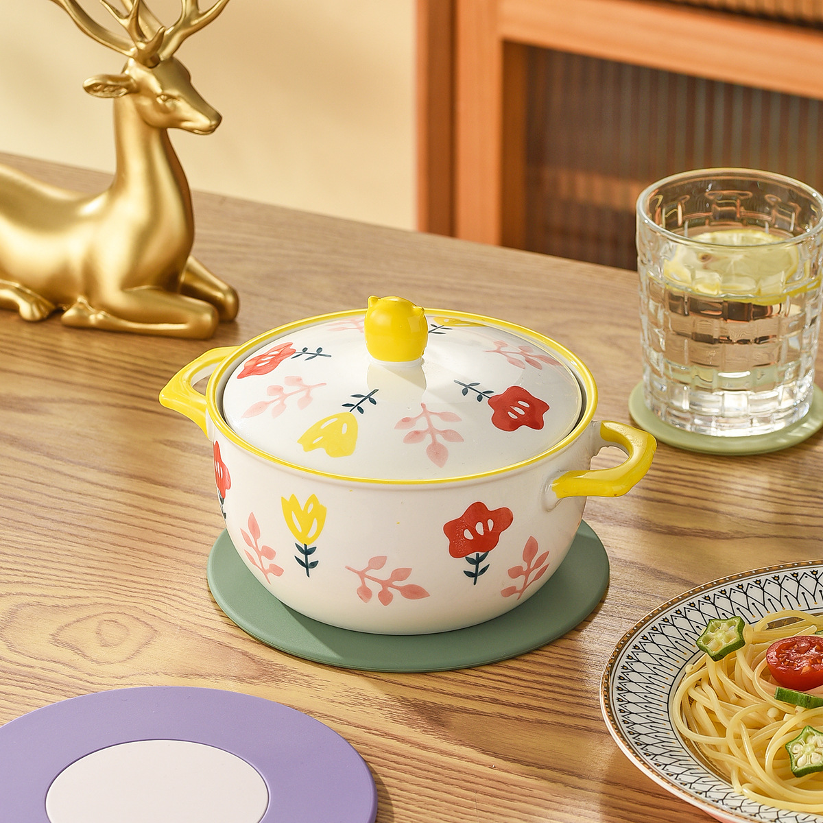 customized household morandi placemat coasters high temperature resistant removable contrast color casserole anti-scald pan mat coaster 中文版