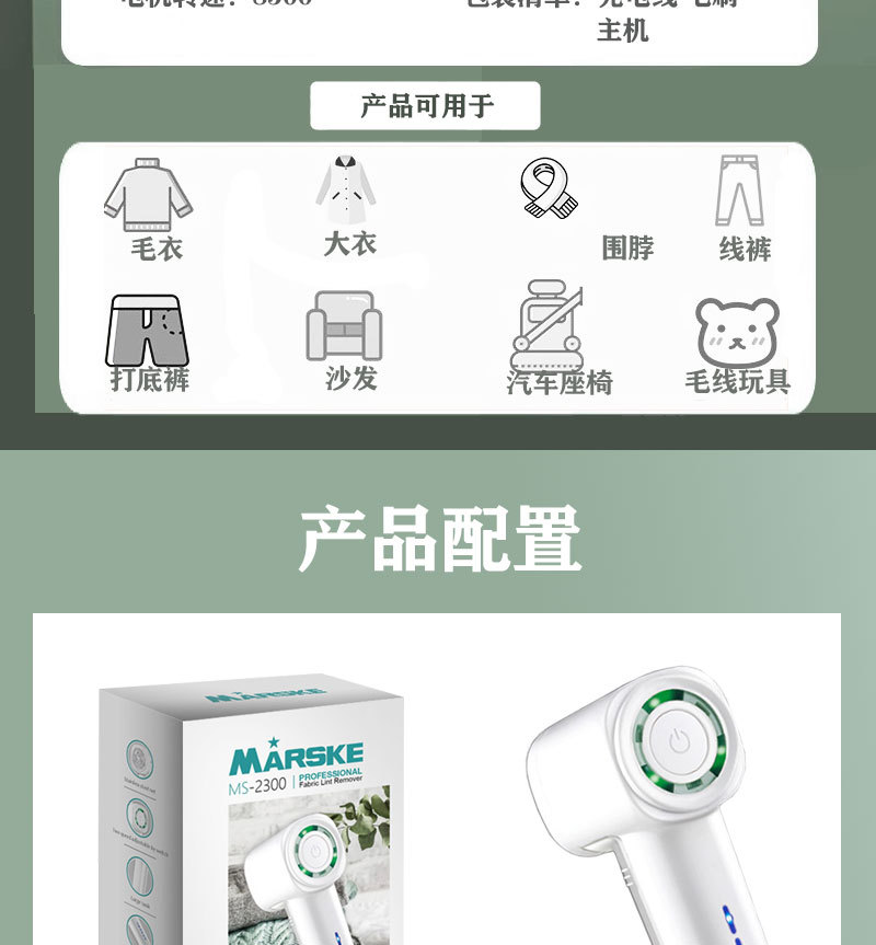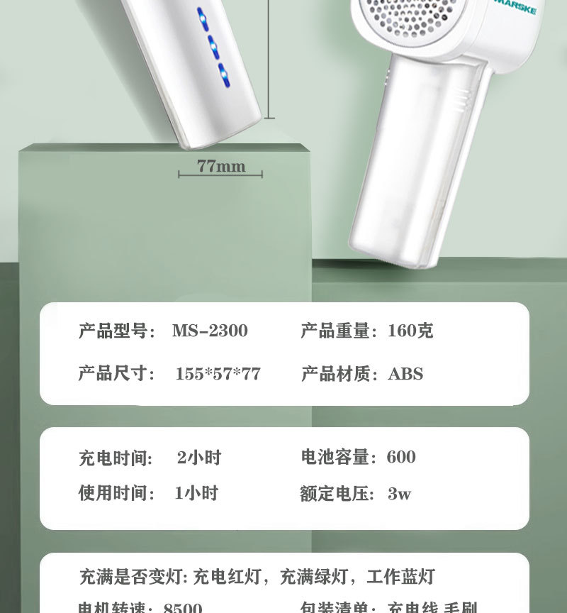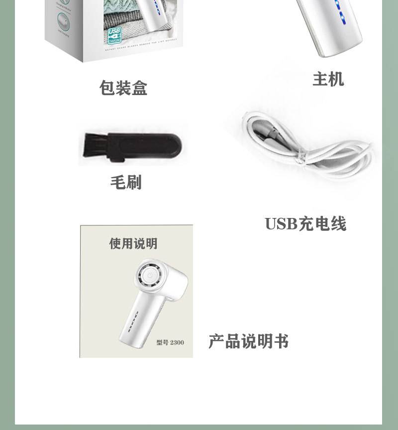 Set includes: one hair ball machine, cleaning brush, USB charging cable, a gift blade, and an English user manual.