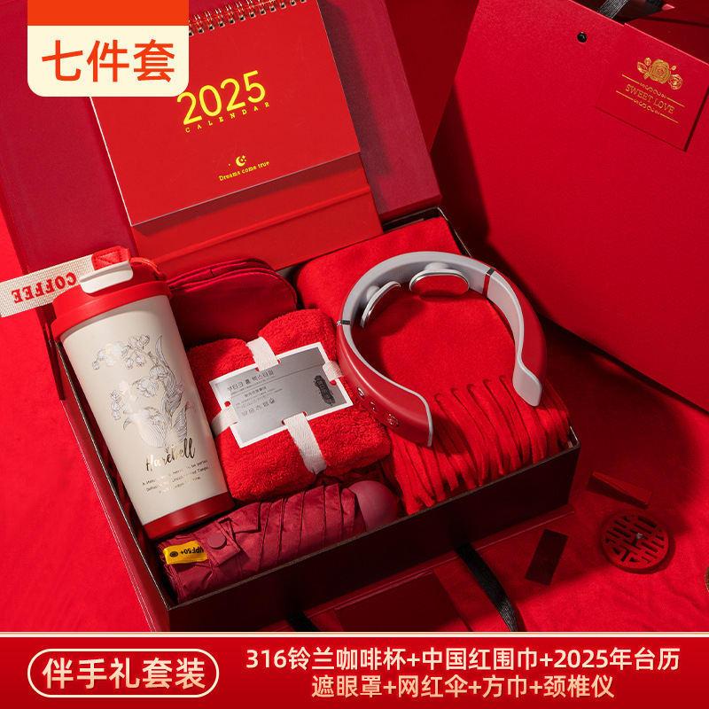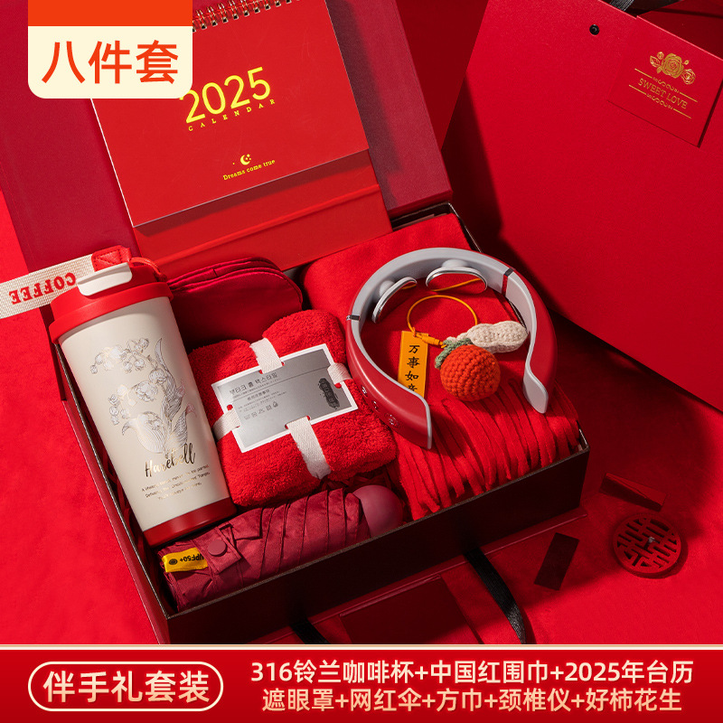 [eight-piece set] linglan cup + scarf + towel + eye mask + internet sensation umbrella + neck massager + desk calendar + decorations