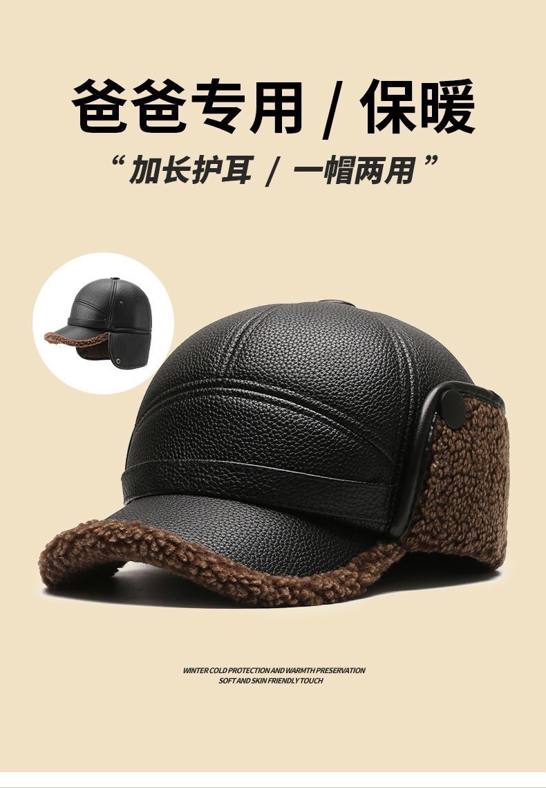 fleece-lined leather hat-brown