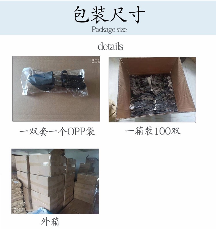 Packing data: 100 pairs of men's shoes per box, weighing 12.6 kilograms. 100 pairs of women's shoes per box, weighing 9.6 kilograms.