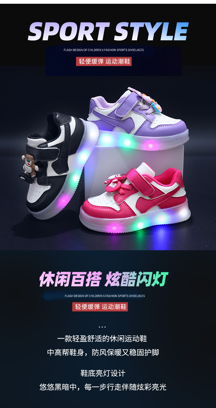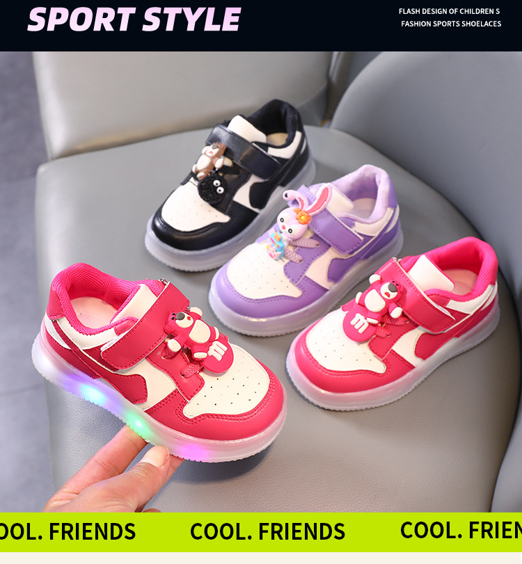 toddler 1-6 years old board shoes girls shoes with led light casual cute cartoon fashion style sneaker soft bottom outdoor
