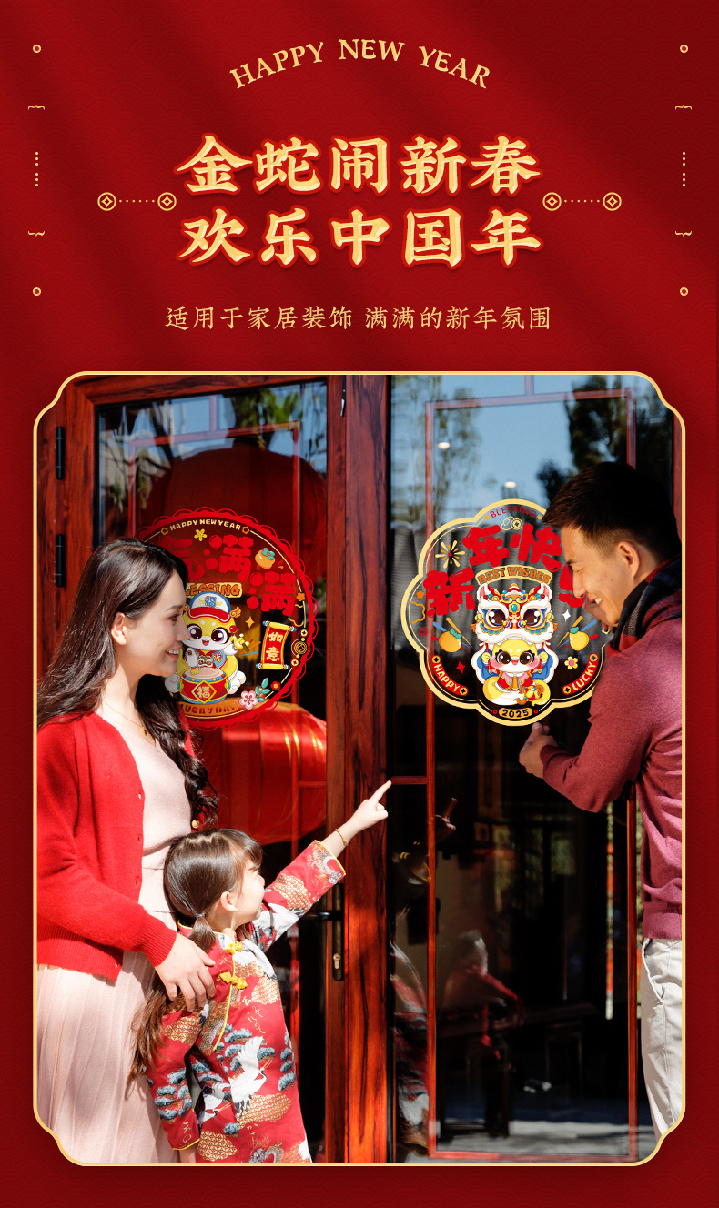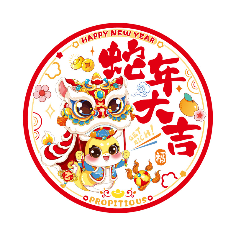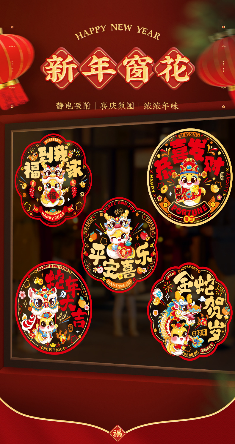 2025 New Year Snake Year Colorful Window Flowers Glass Spring Festival Spray Adhesive Paper New Year Fortune Characters Cartoon Window Static Adhesive