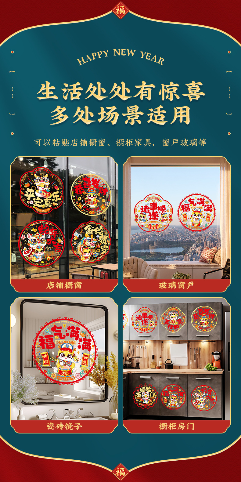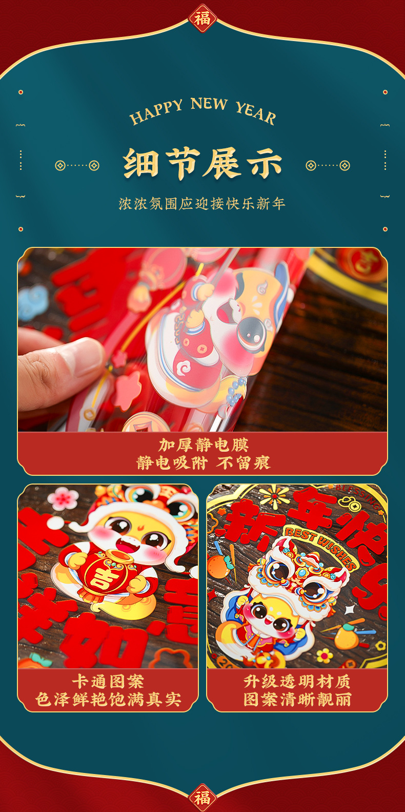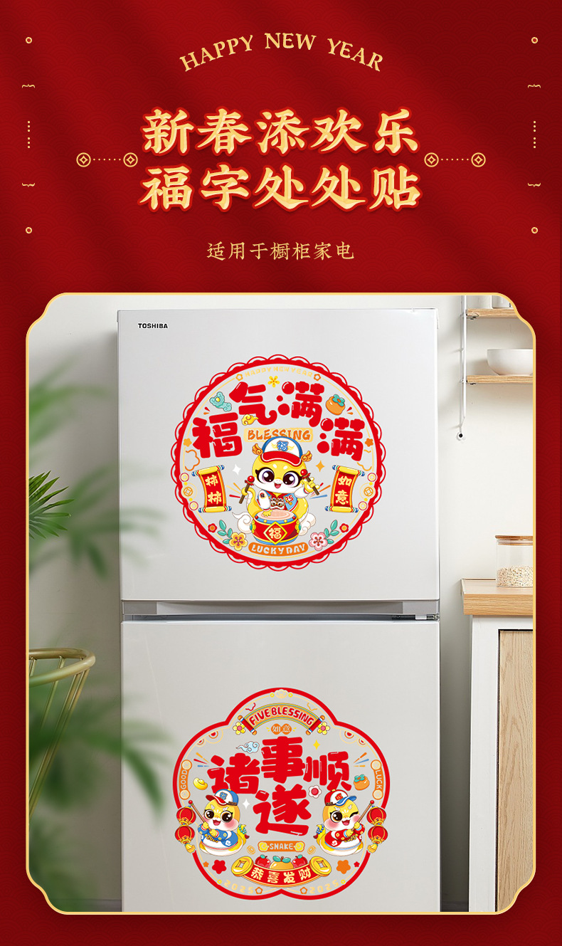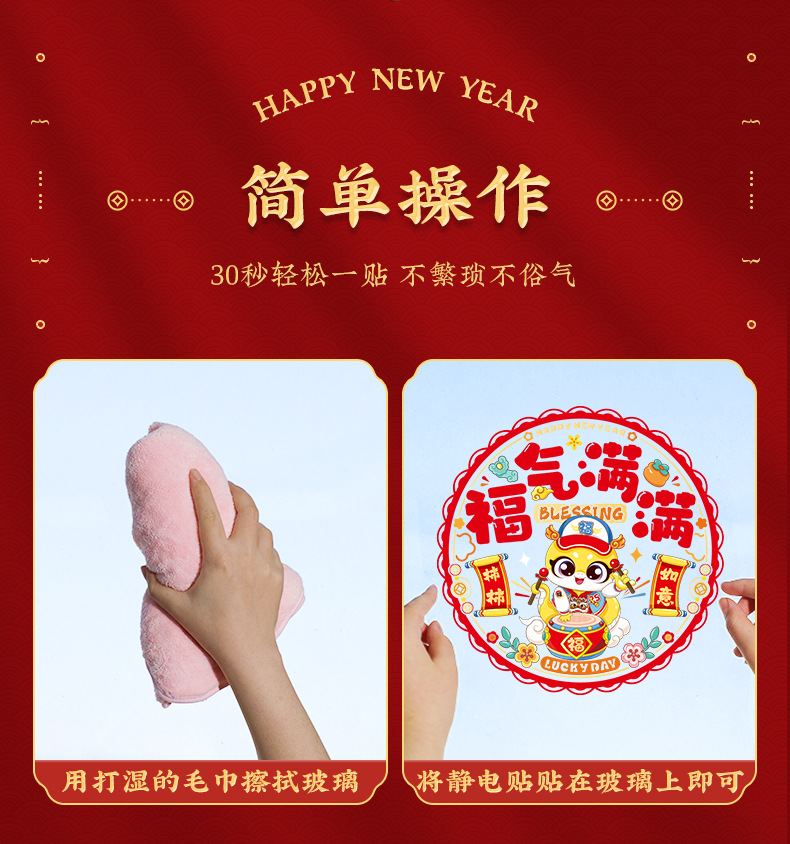 2025 Snake Year Electrostatic Film Window Decorations, Paper-Cutting Spring Festival Fortune Characters, Home Decorations, Glass Decals, Colorful Window Flowers