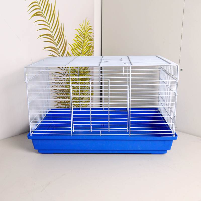white cage with blue background