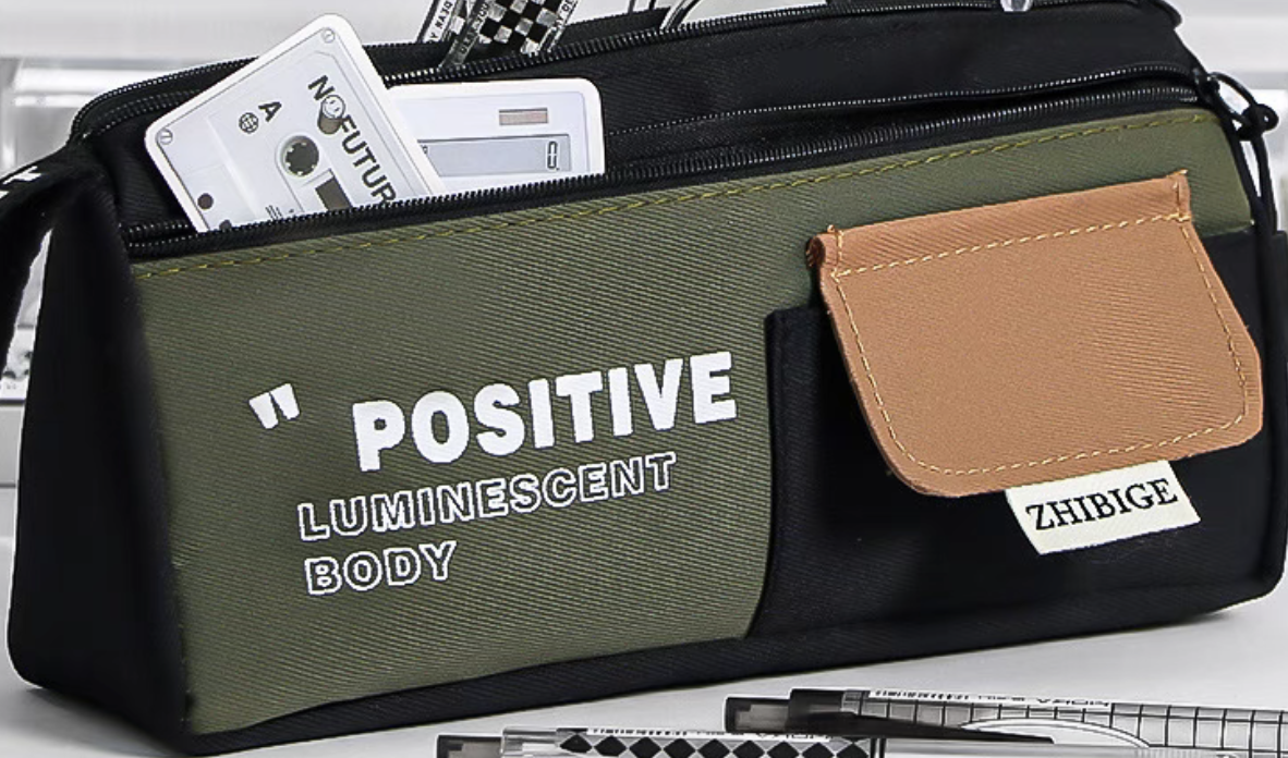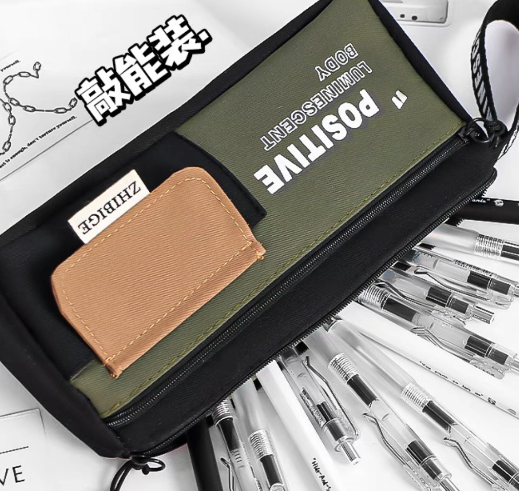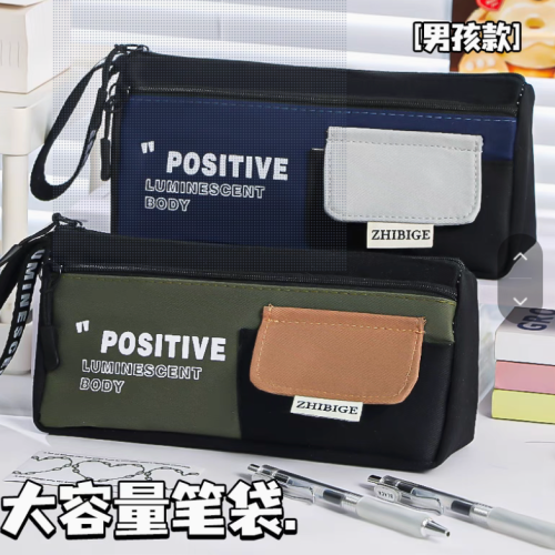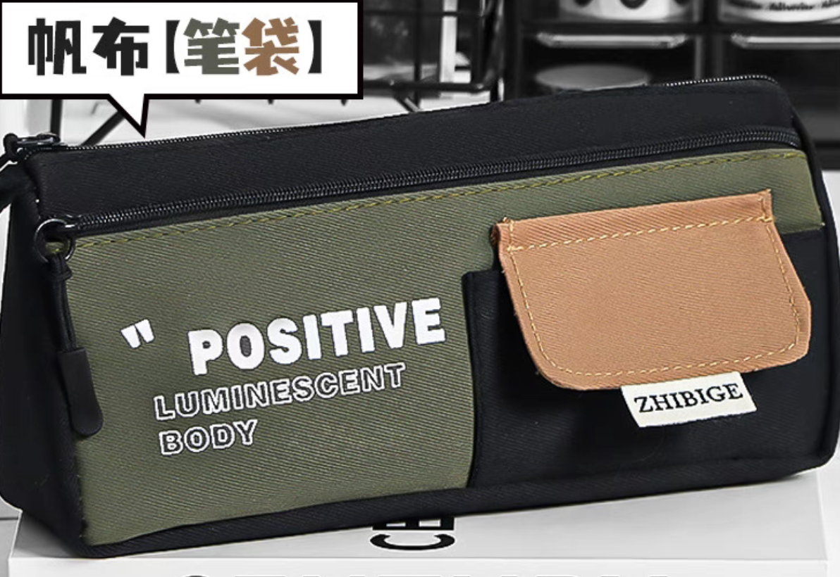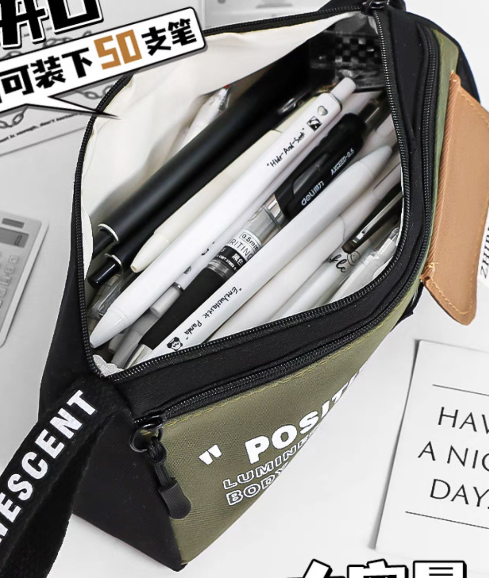 simple color matching good-looking large triangle pencil case large capacity zipper for boys and girls universal stationery case portable belt 中文版