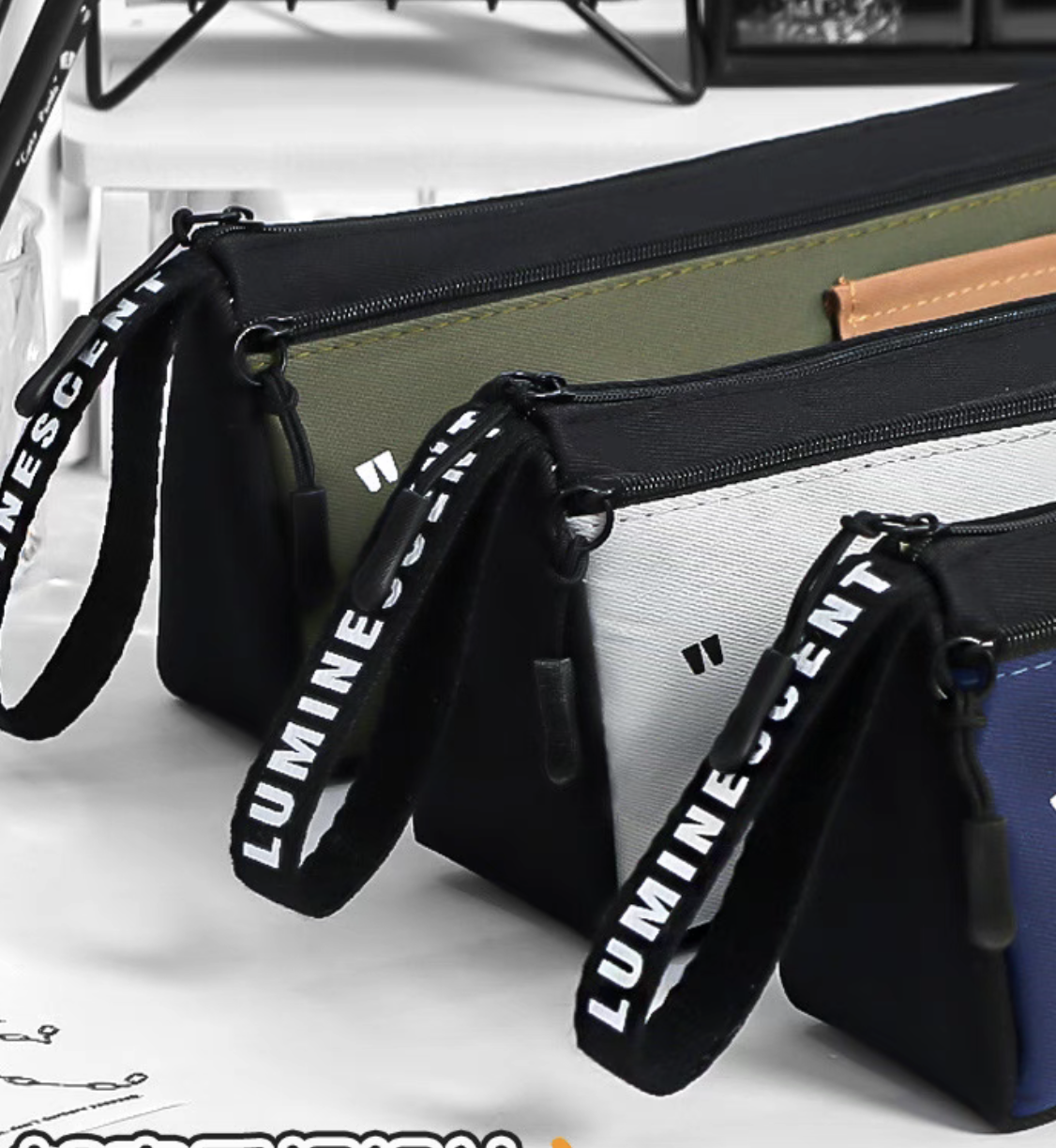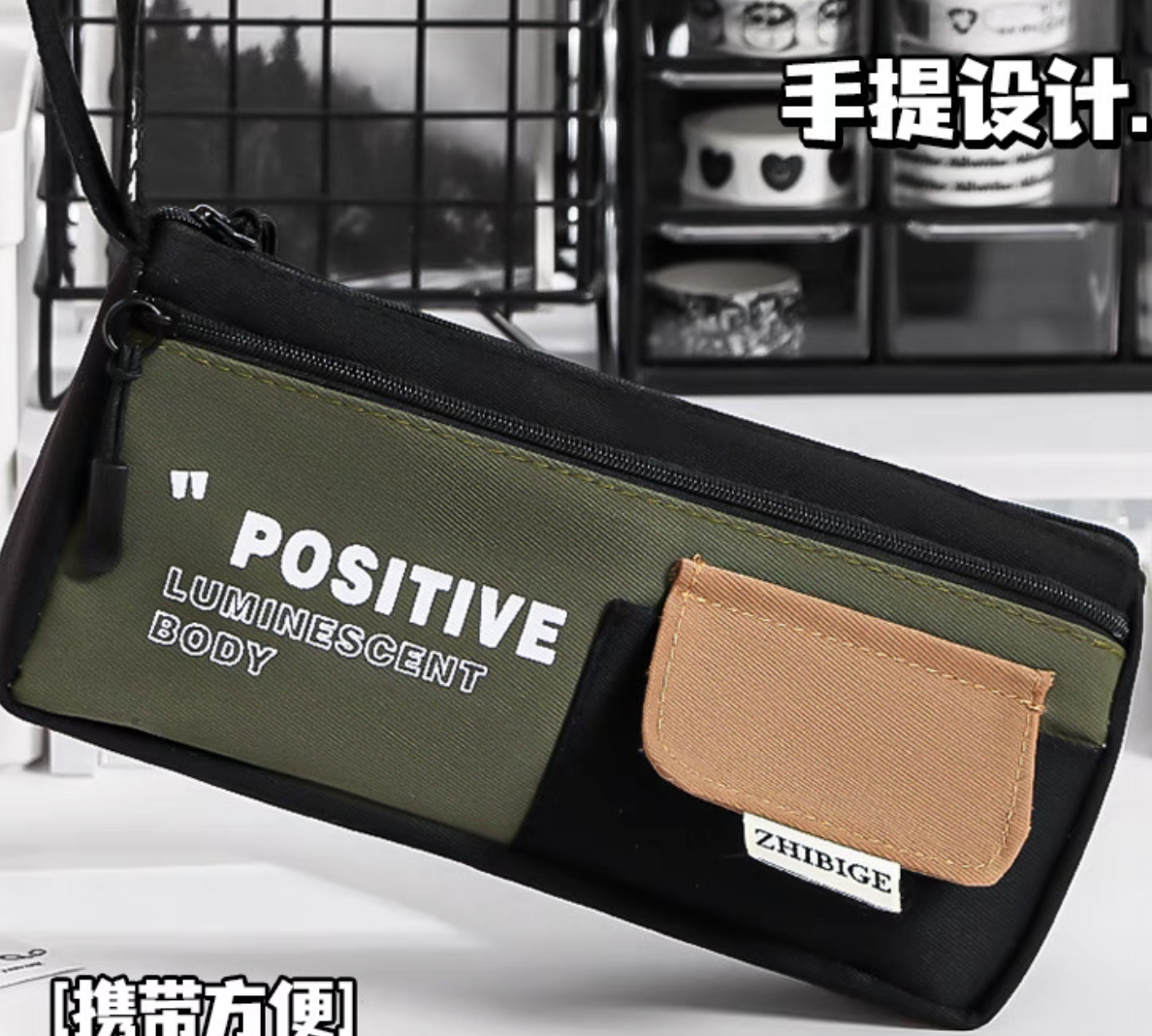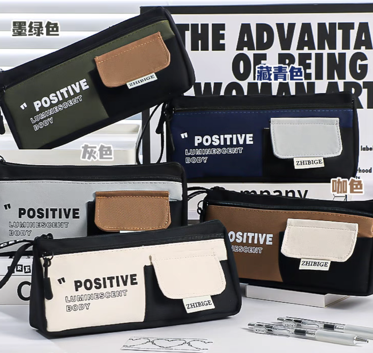 simple color matching good-looking large triangle pencil case large capacity zipper for boys and girls universal stationery case portable belt 中文版