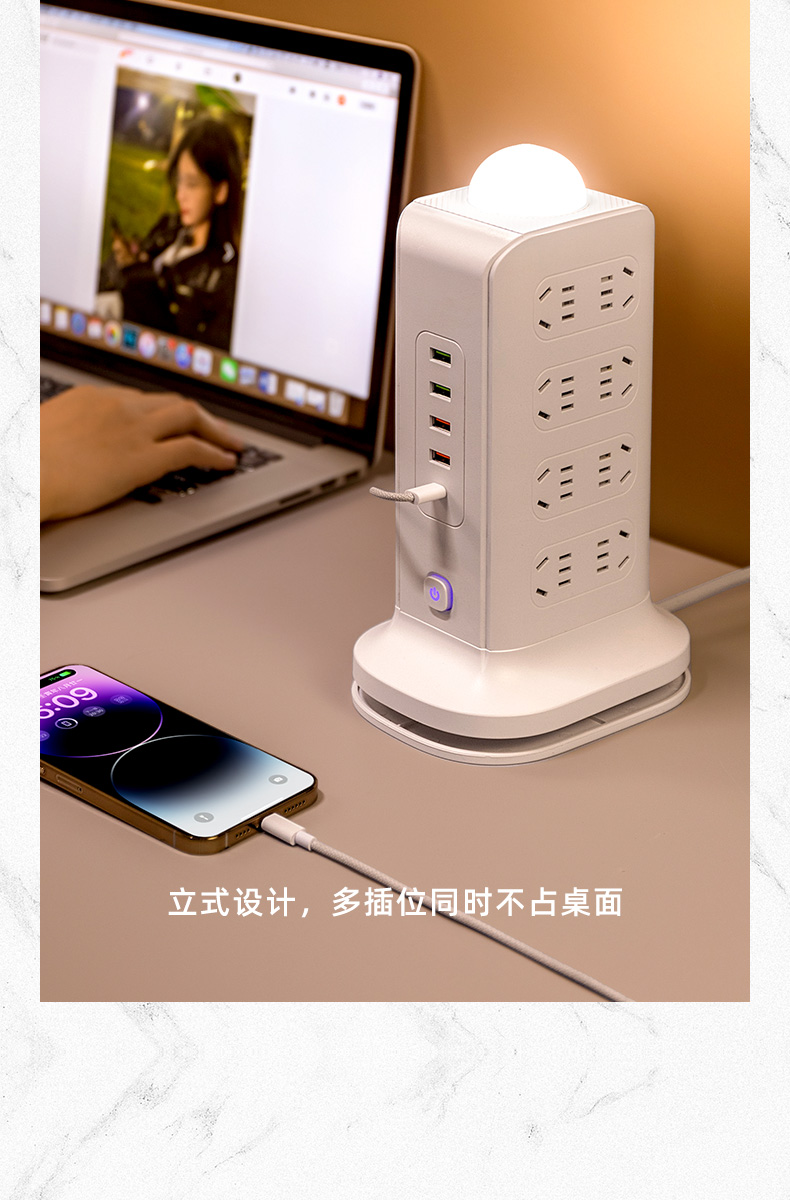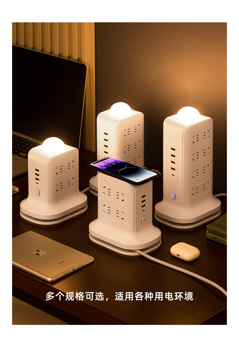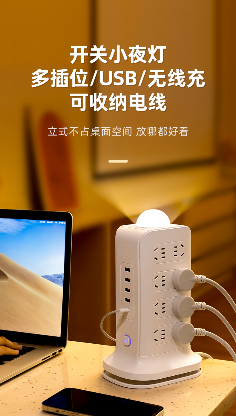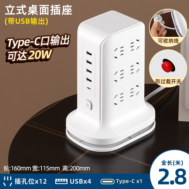 three-layer + usb + wireless charger 2.8 m [safety overload prevention]]