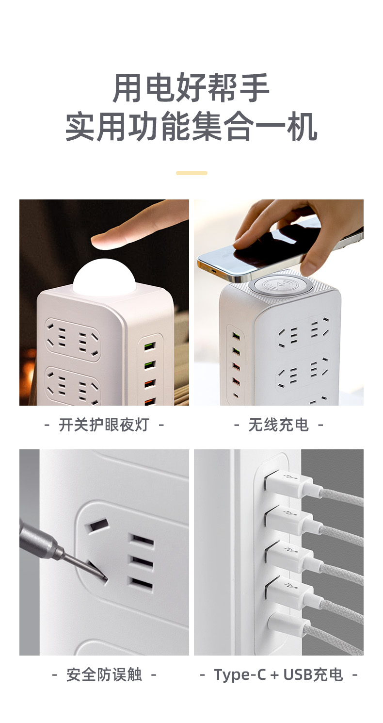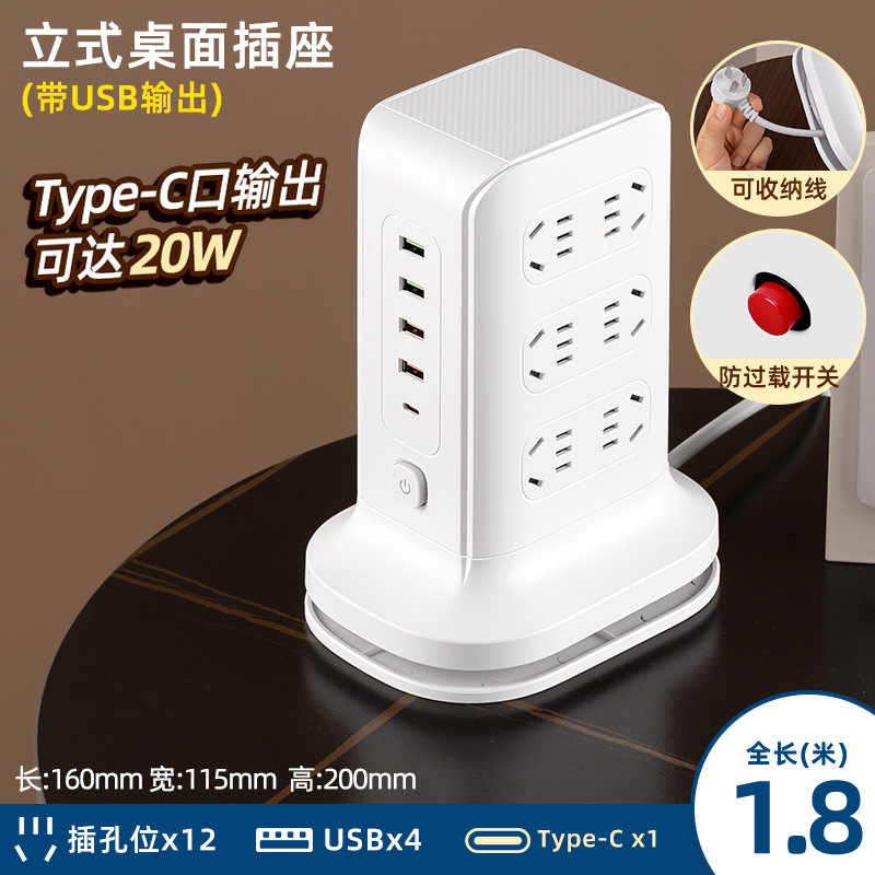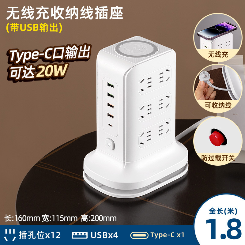 three-layer + usb + wireless charger 1.8 m [safety overload prevention]]