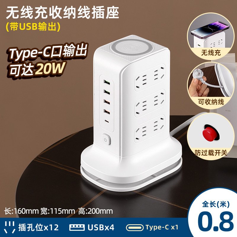 three-layer + usb + wireless charger 0.8 m [safety overload prevention]]
