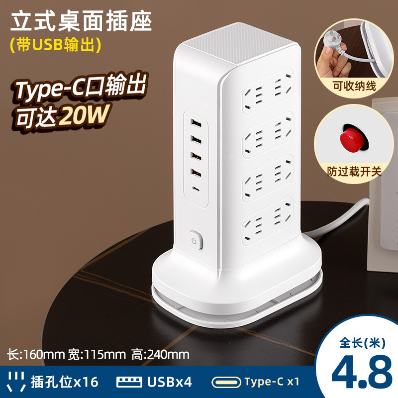 four-layer + usb + night light 4.8 m [safety anti-overload]]