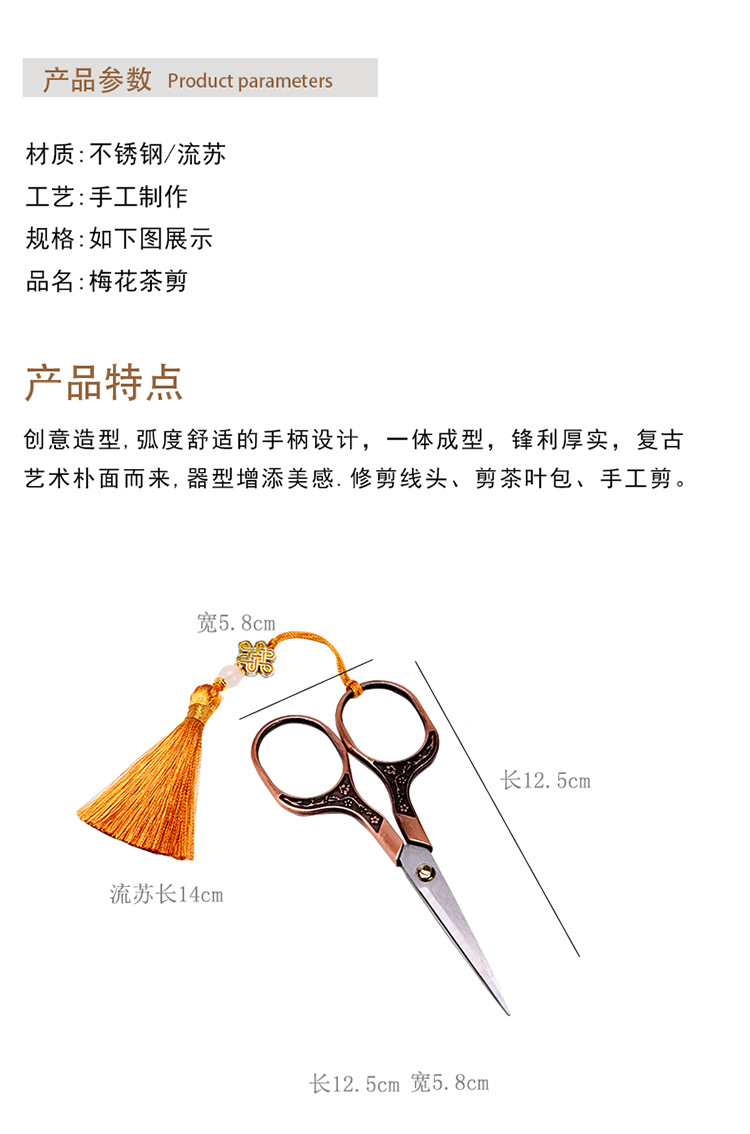 plum tea scissors with tassels-red copper