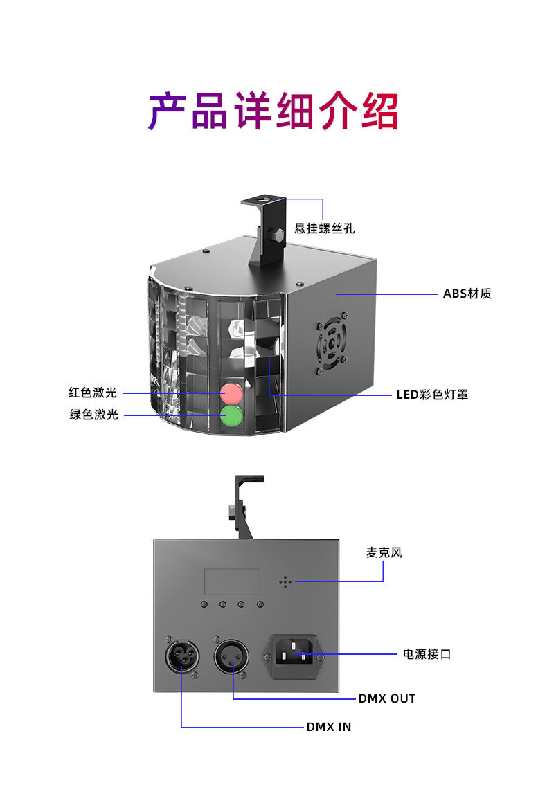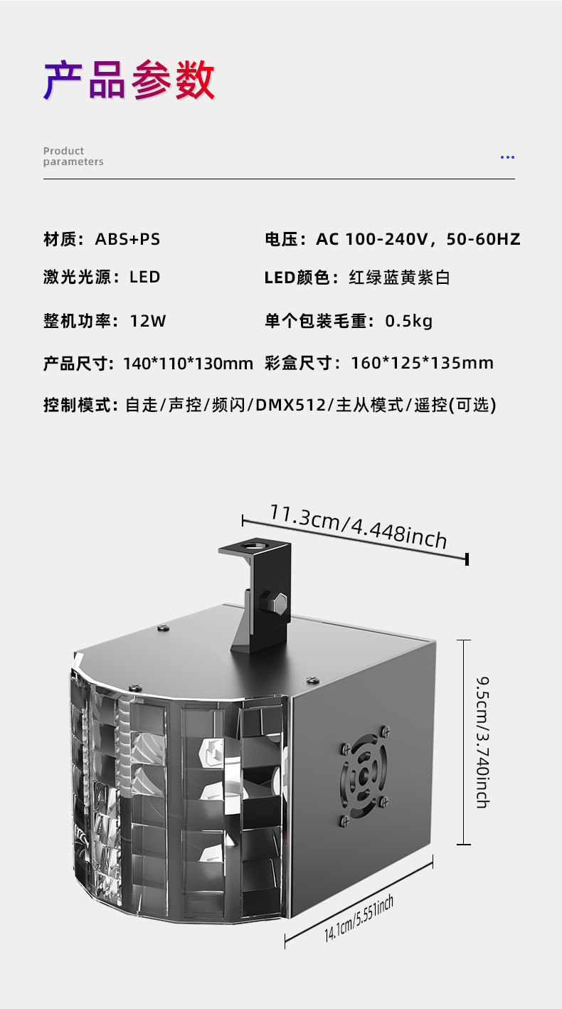 foreign trade exclusive for flash ambience light colorful rotating stage light bar disco stage lighting butterfly lamp laser voice-activated sensor light