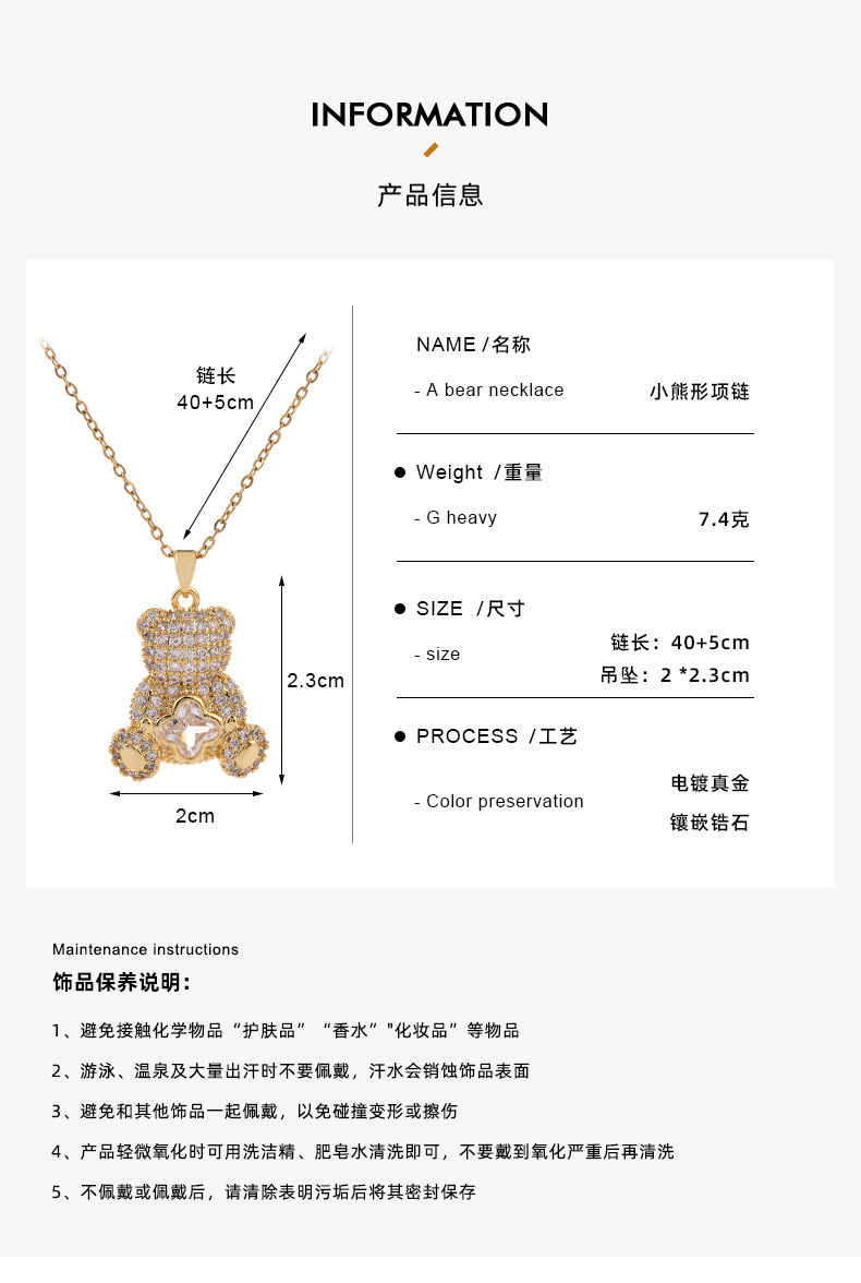 diamond bear necklace transparent color CN¥ 7.1 999999 piece available