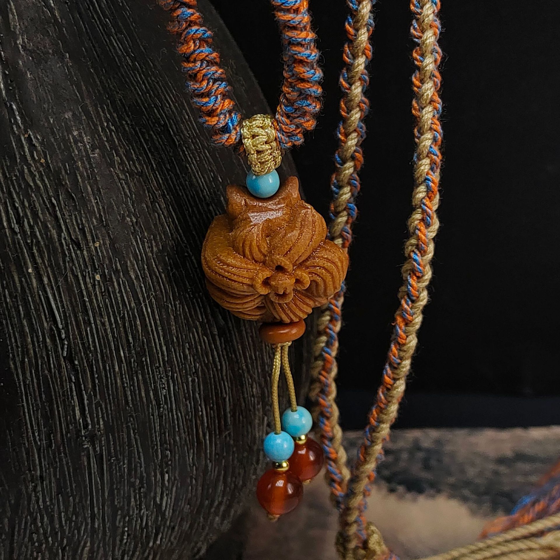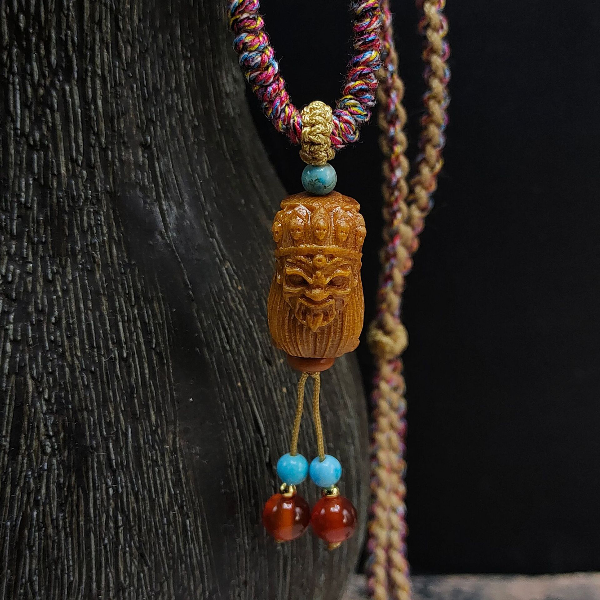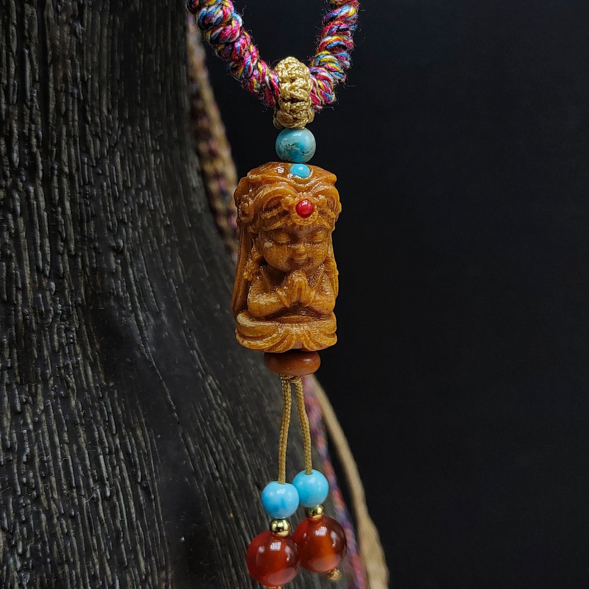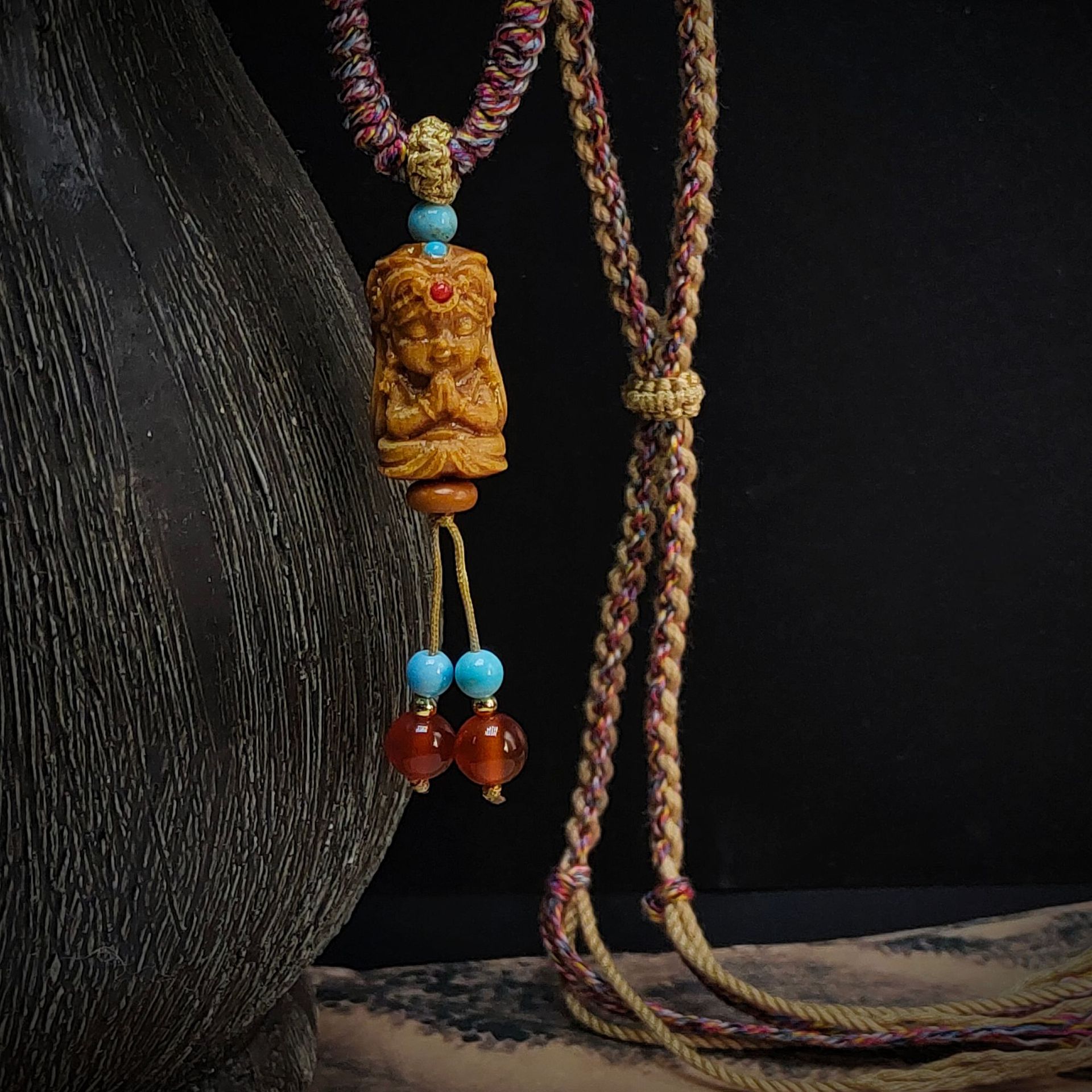 材质:手搓棉线、檀木、红玛瑙、优化绿松石