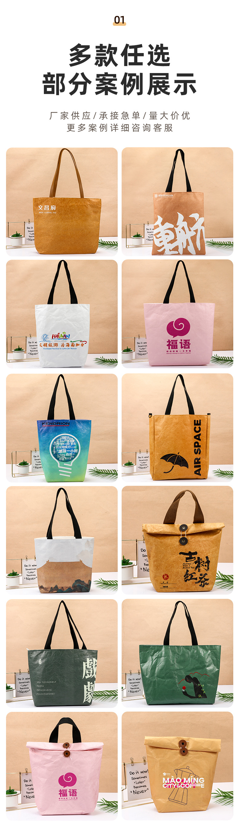 multiple colors; multiple specifications; tyvek + canvas ¥0.0 91666658 piece available