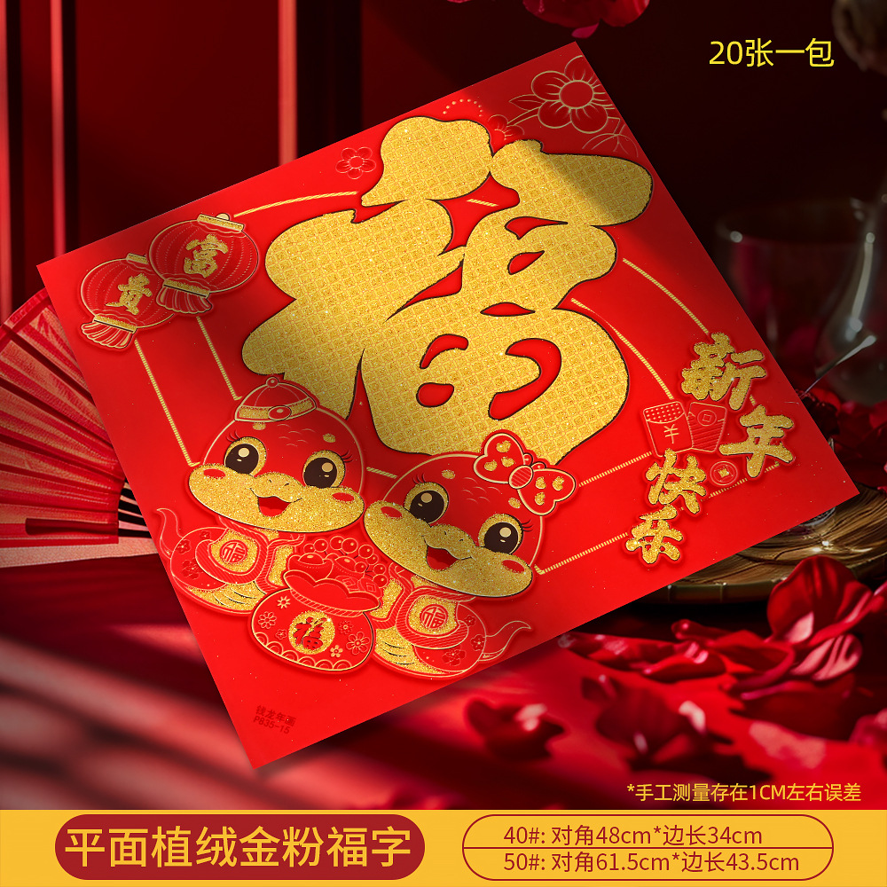 (snake style) fu to my home 11)40#2 layers flocking three-dimensional gold powder fu character