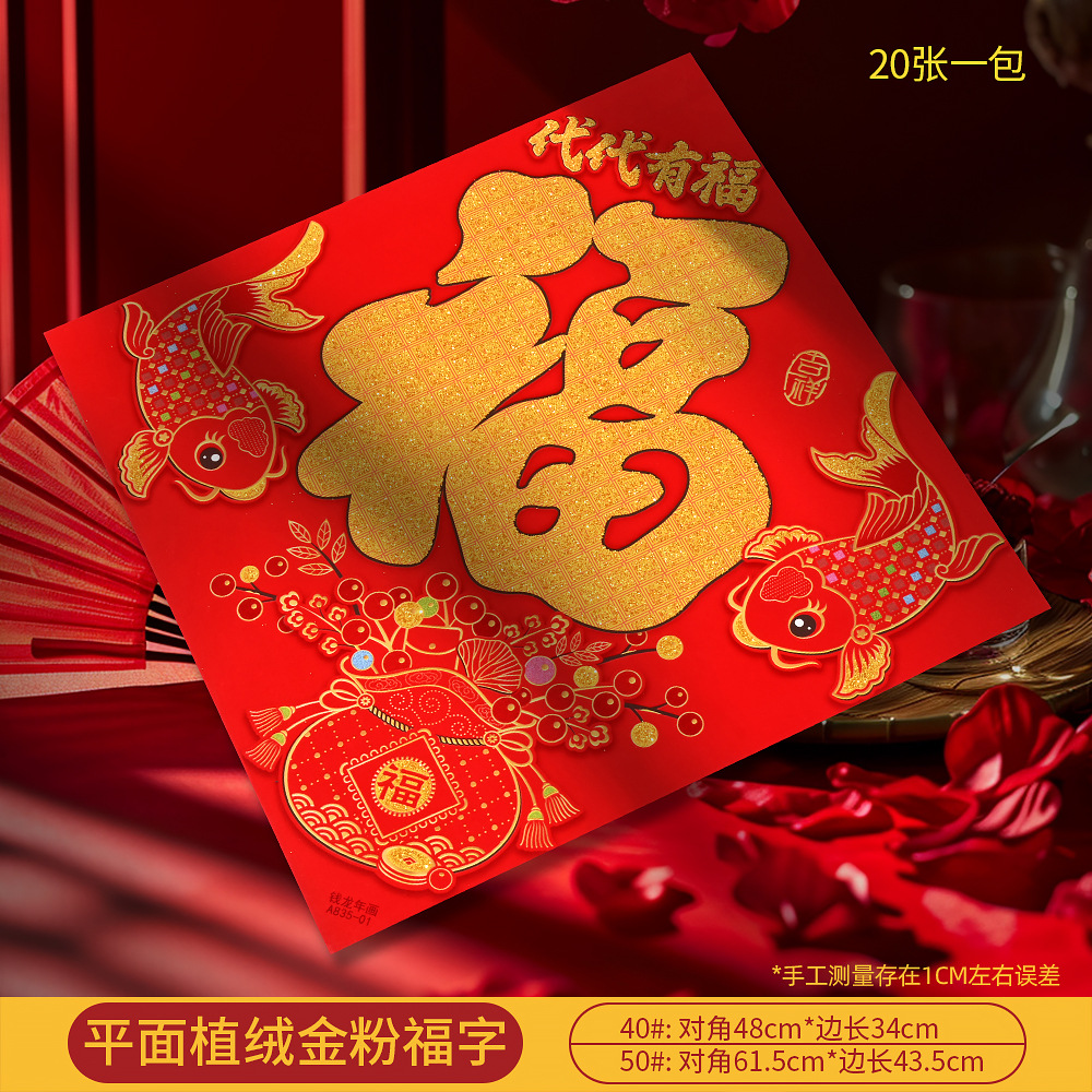 (002 generation blessing) 40# flat flocking gold powder fu character
