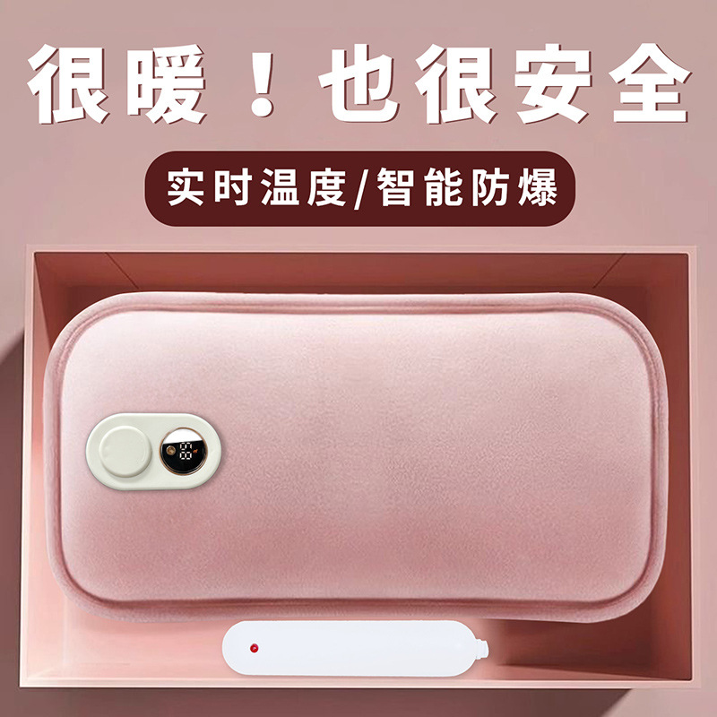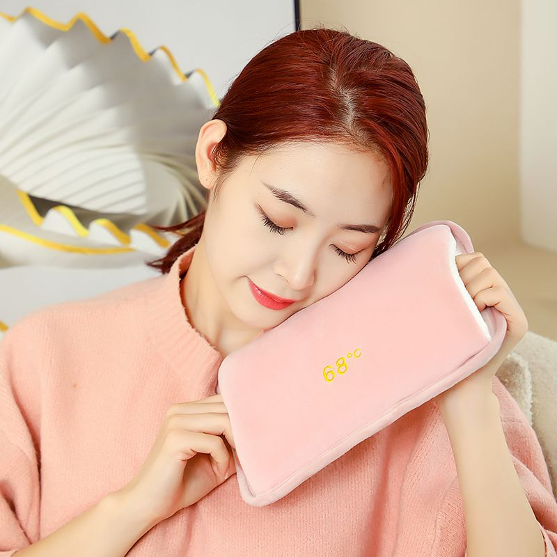 pink letters two-side hand putting hot water bag