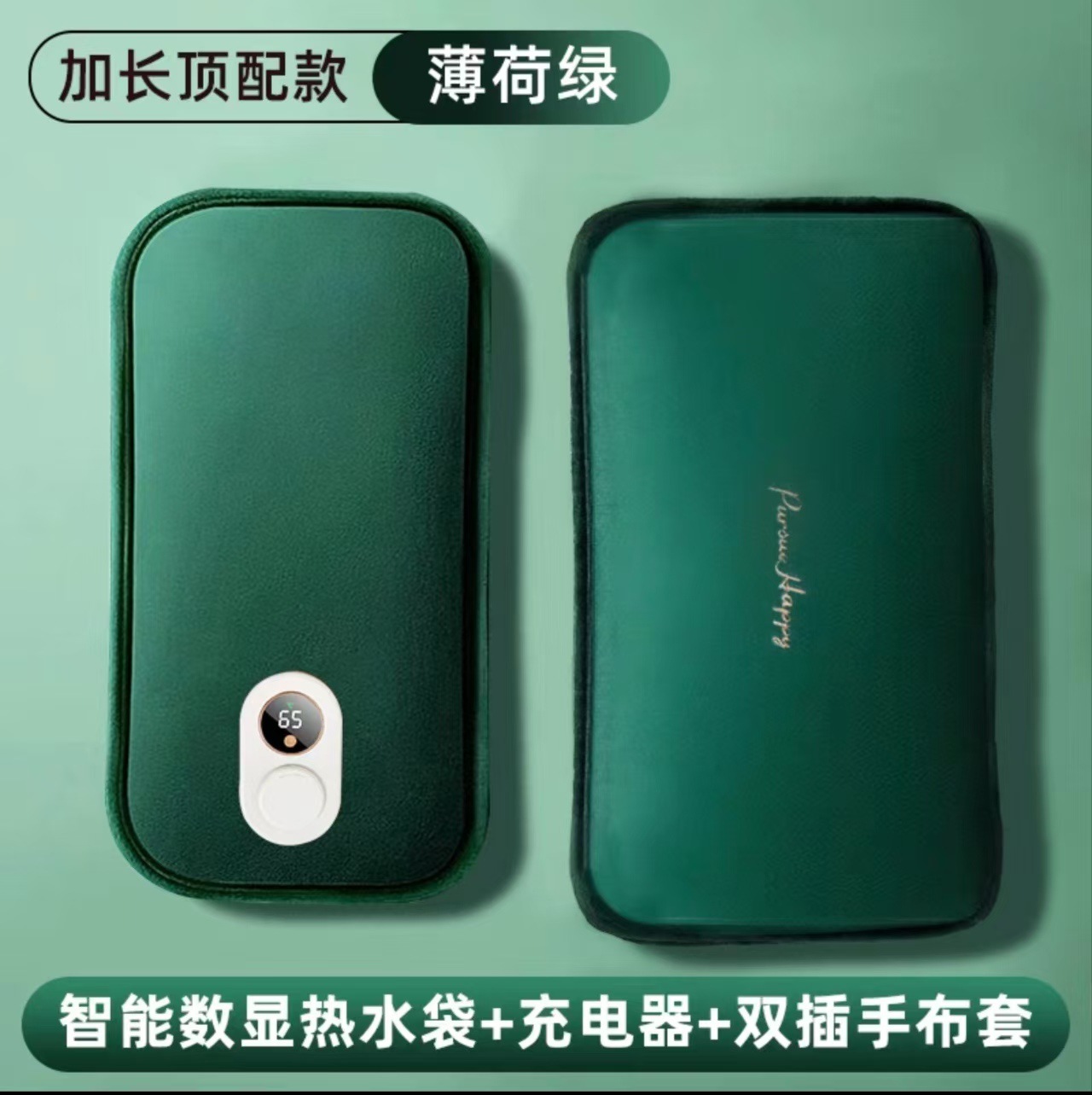 green letter two-side hand putting hot water bag