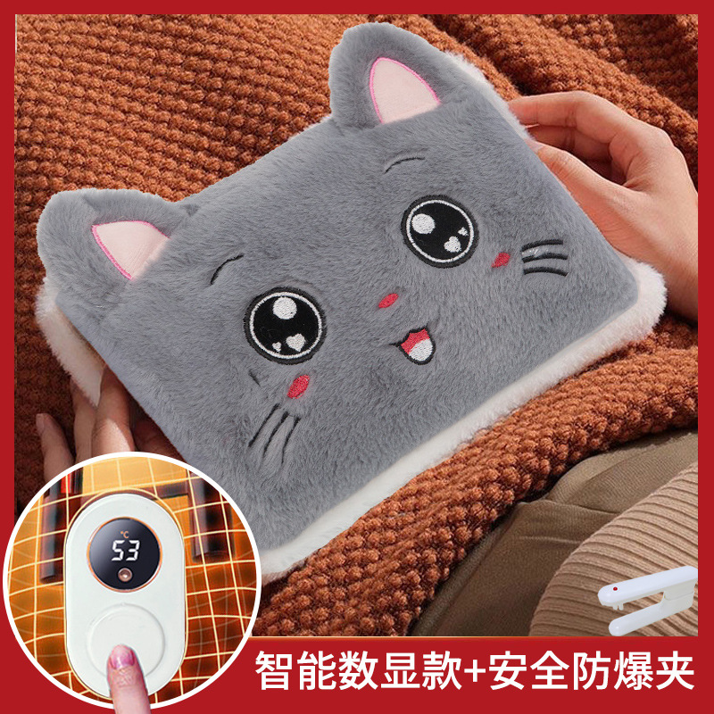 gray cat's paw two-side hand putting hot water bag