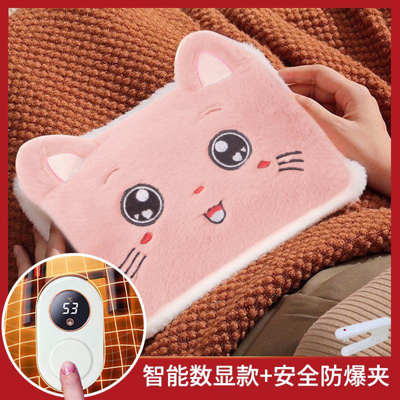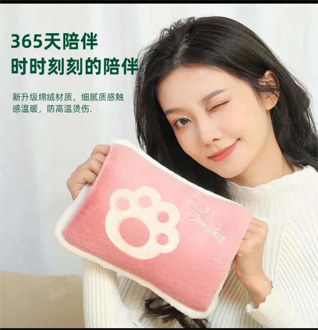 pink cat's paw two-side hand putting hot water bag