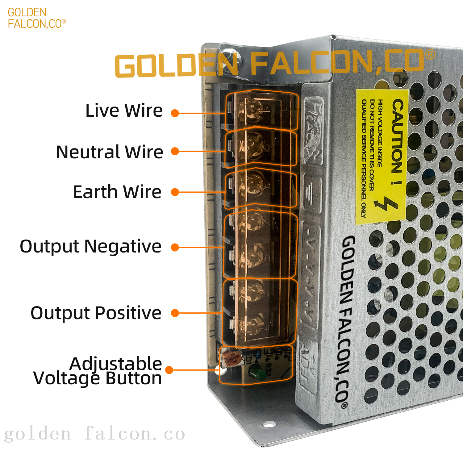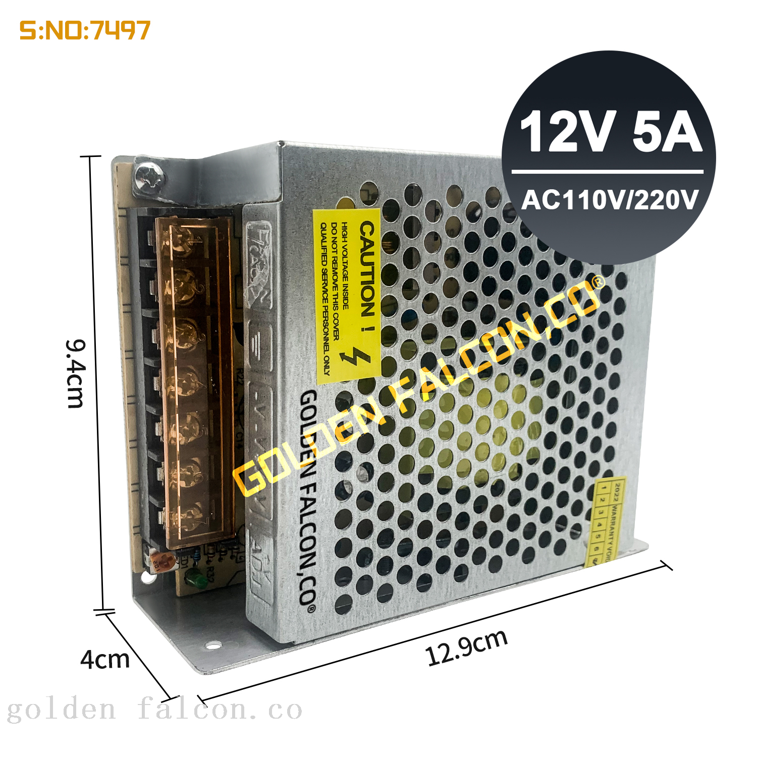 Dual Output Capability: The Golden Falcon 7497 switch power supply features dual output capabilities, allowing users to easily power multiple devices simultaneously, making it an ideal solution for various applications, such as simultaneously powering LED light strips and CCTV cameras.