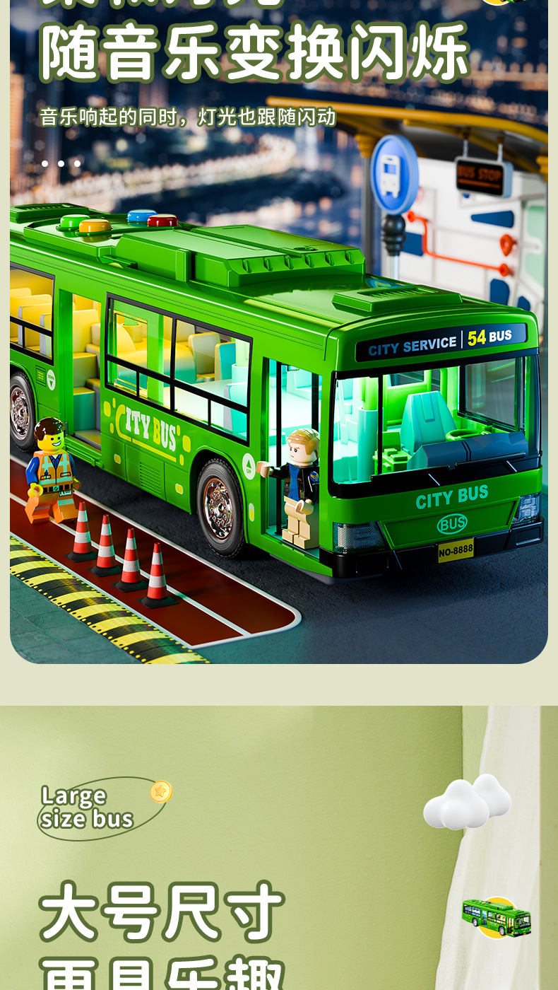 (with battery) green bus [sound and light/inertia/open door]]