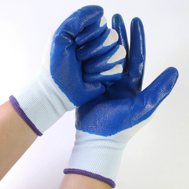 13-pin polyester nylon nitrile flat hanging gloves warehouse packing factory work construction site labor-protection rubber universal gloves