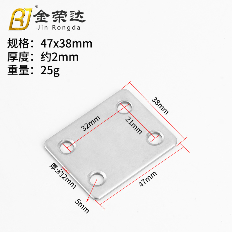 steel straight piece no. 2 length 47mm width 16mm thickness 2mm
