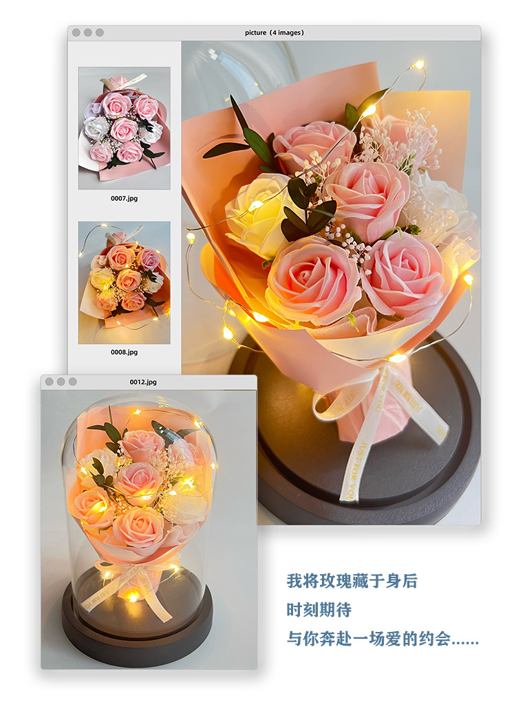 foreign trade special for valentine's day led light transparent glass cover rose preserved fresh flower decoration mother's day carnation 中文版