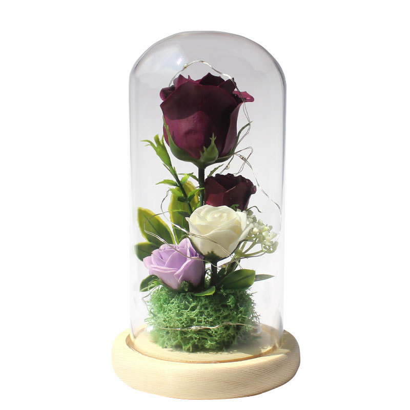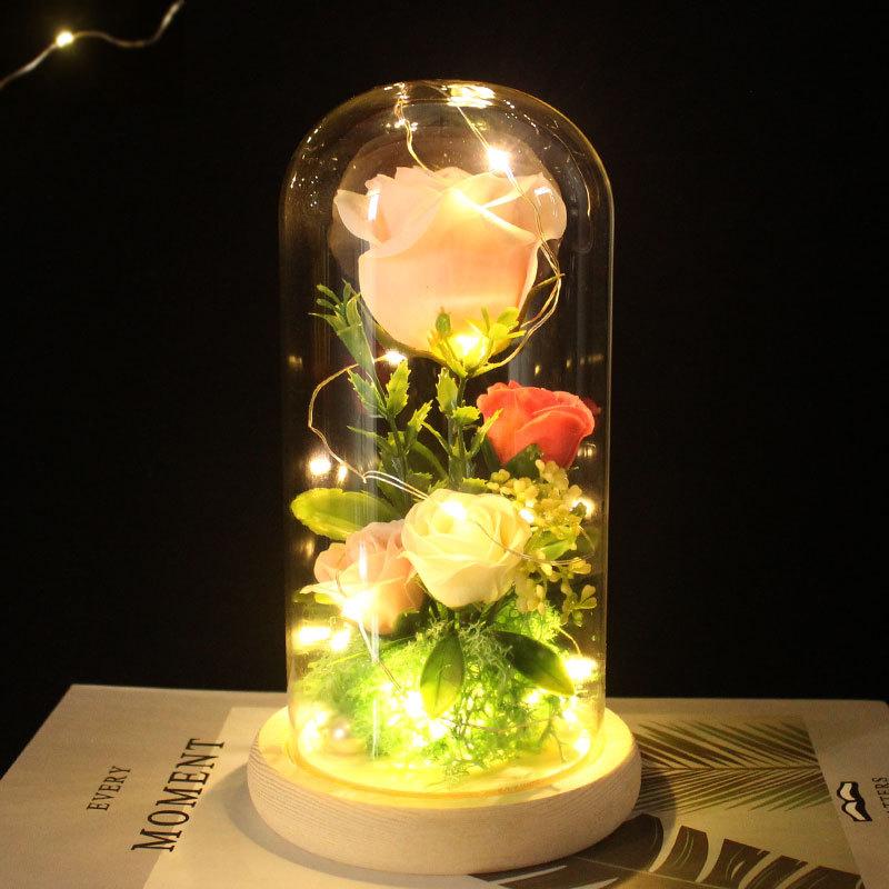 foreign trade special for valentine's day gift soap emulational rose flower gift box led light glass cover decoration ornaments