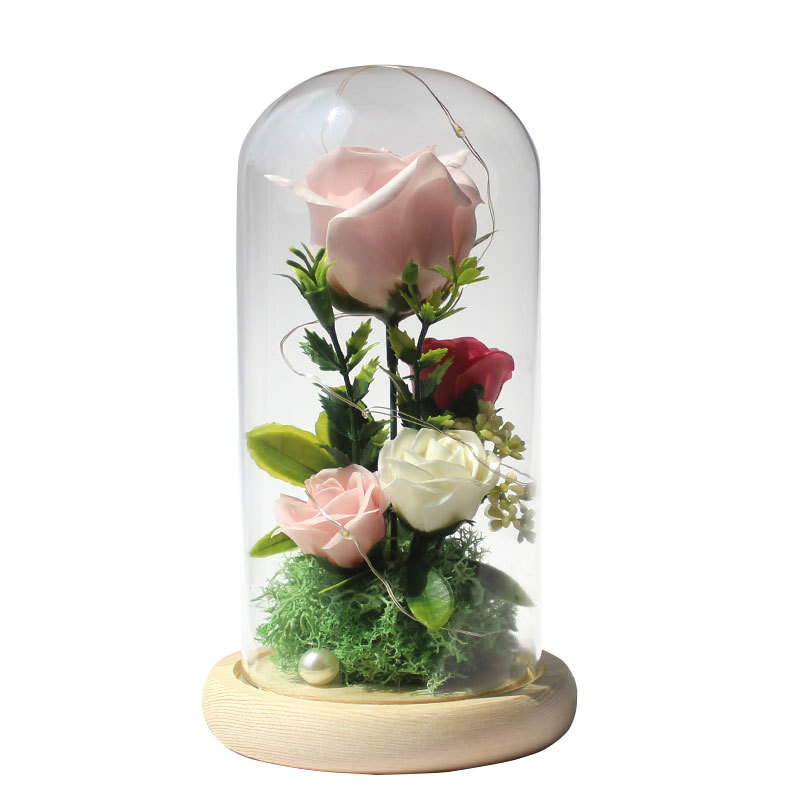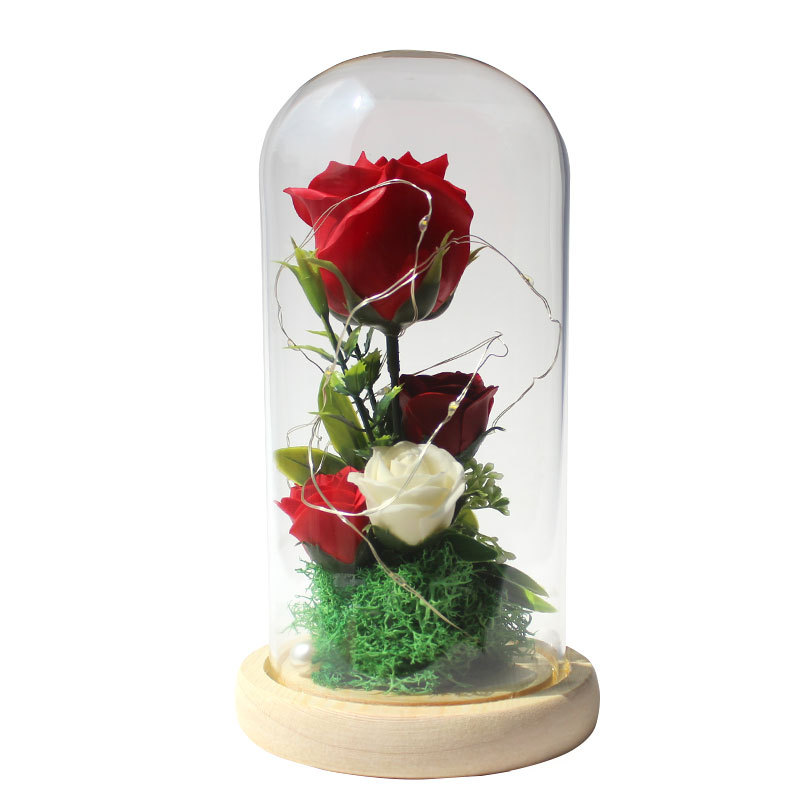 foreign trade special for valentine's day gift soap emulational rose flower gift box led light glass cover decoration ornaments 中文版