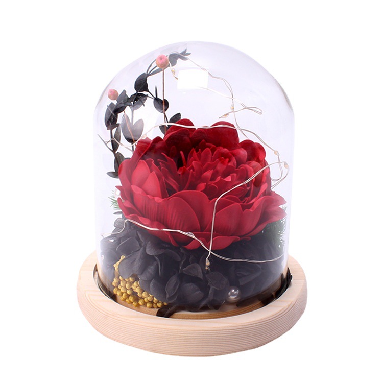 foreign trade special for valentine's day 520 gift light luminous glass cover preserved fresh flower birthday mother's day big peony hydrangea 中文版