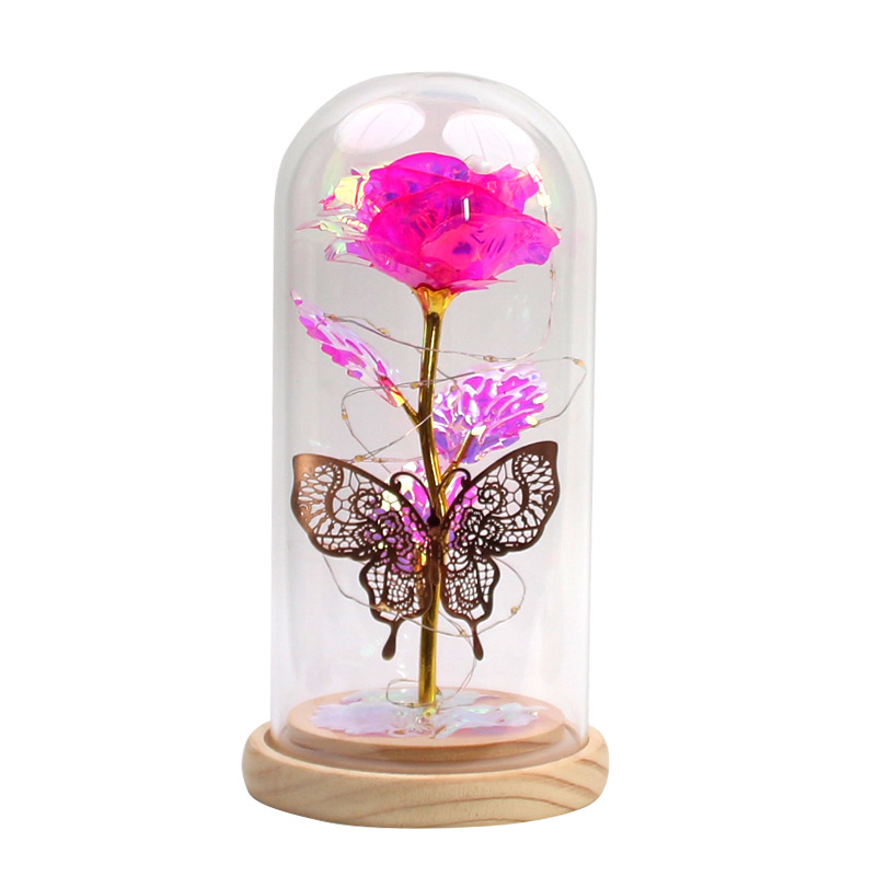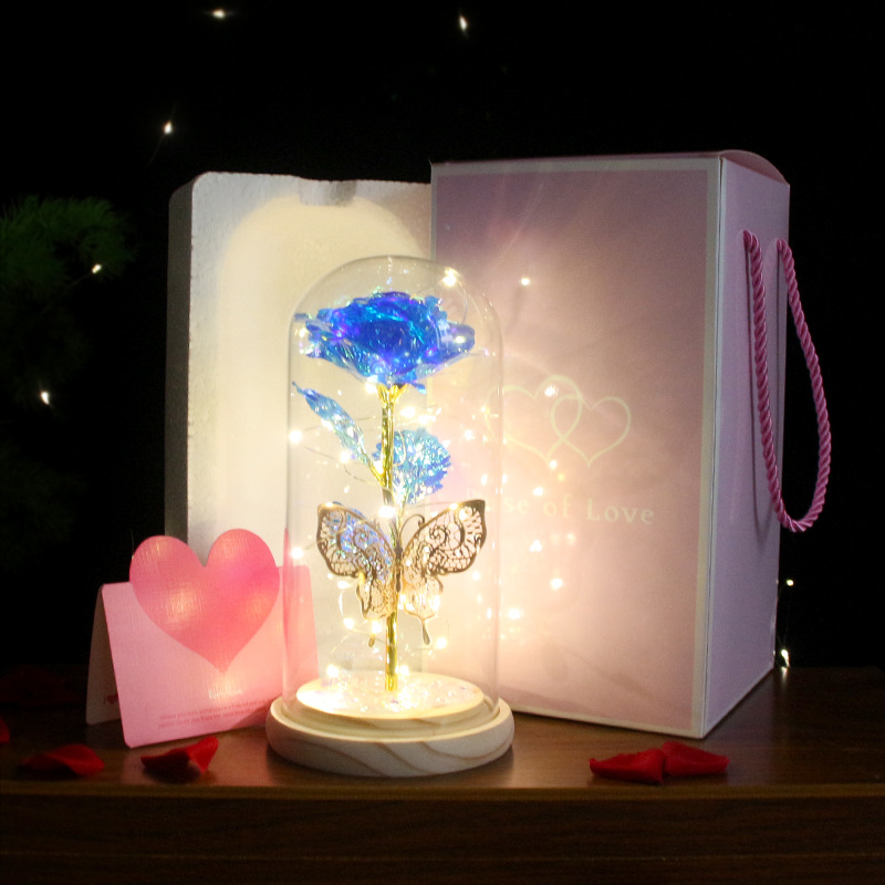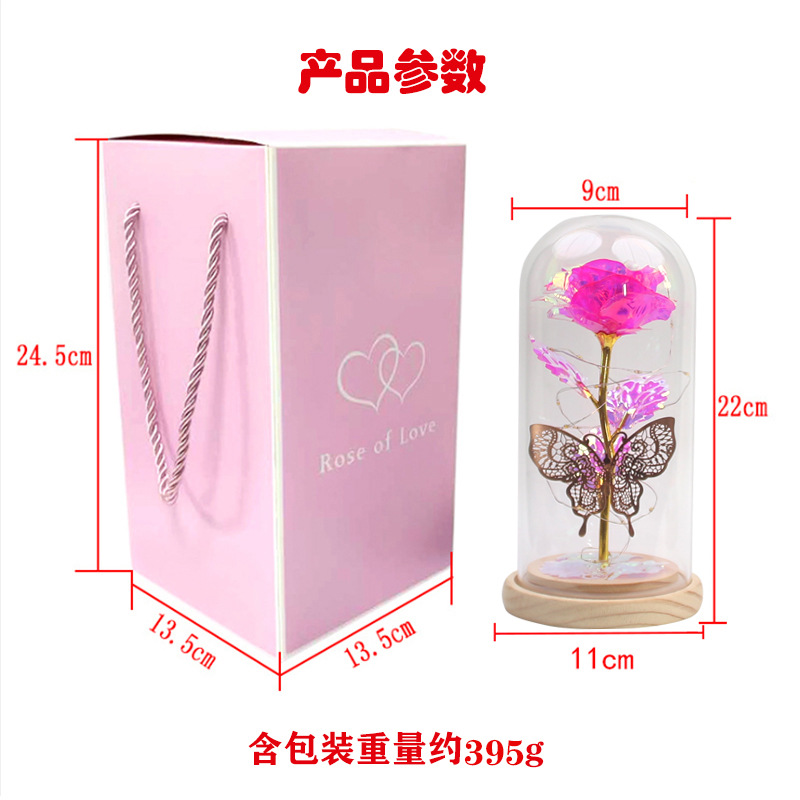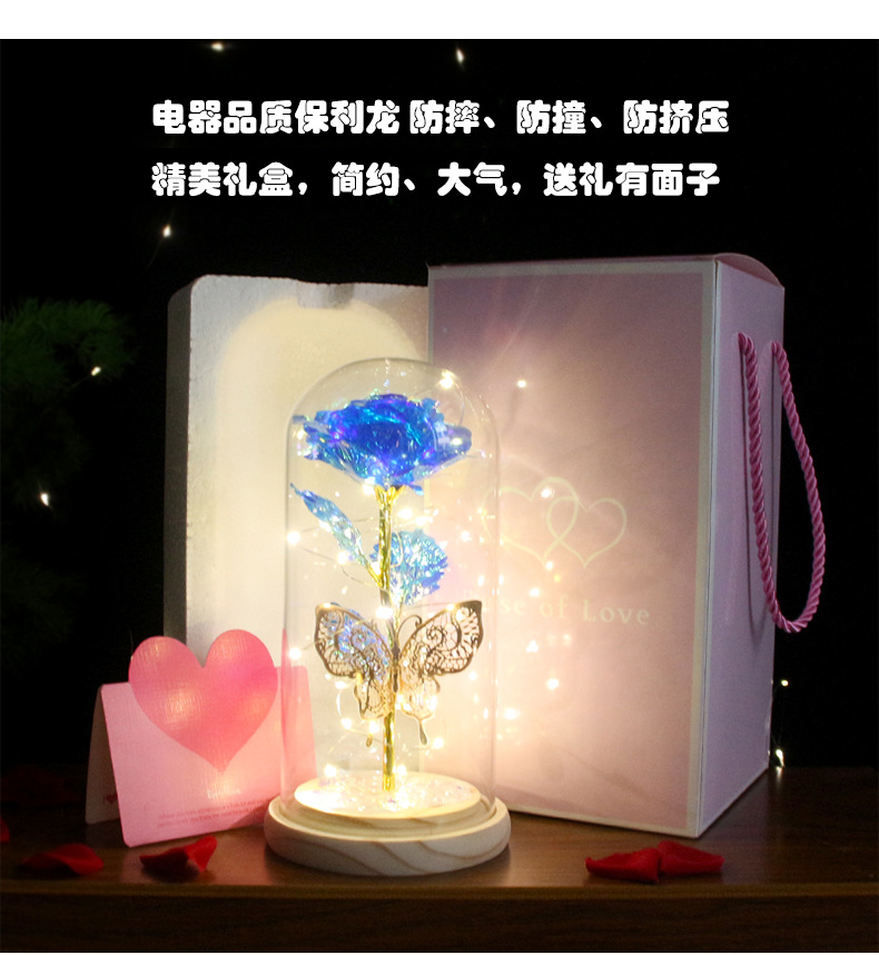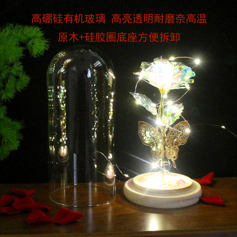 foreign trade exclusive mother's day creative gift led light colorful rose luminous glass cover gold foil flower gift box